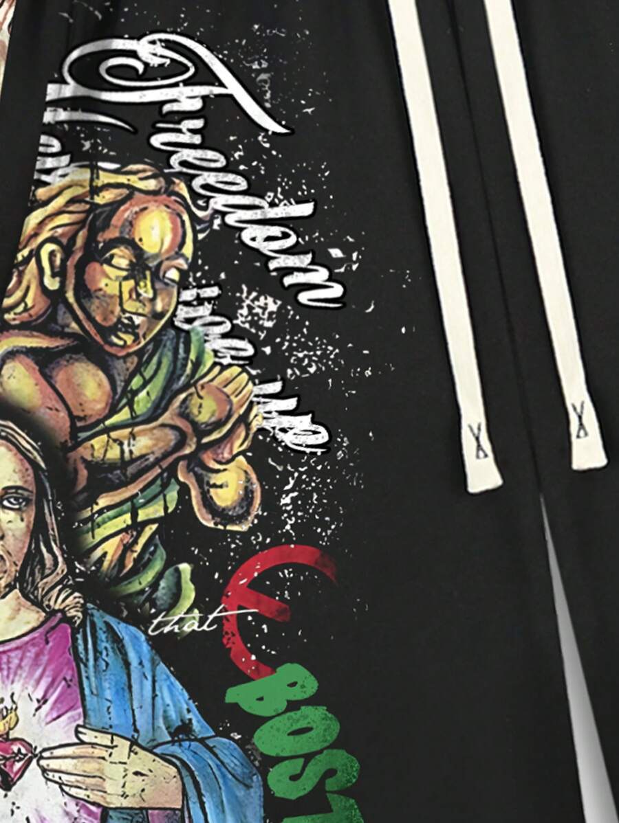 Anime Men's Religious Street-Style Printed Casual 3/4 Length Shorts, Fashionable For Summer