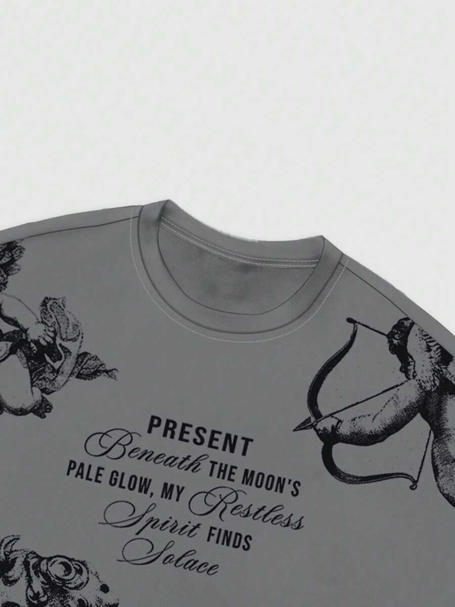 Goth Men's Renaissance Vintage Cupid Angel Print Short Sleeve T-Shirt, Suitable For Everyday Wear, Spring/Summer
