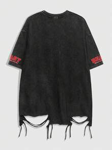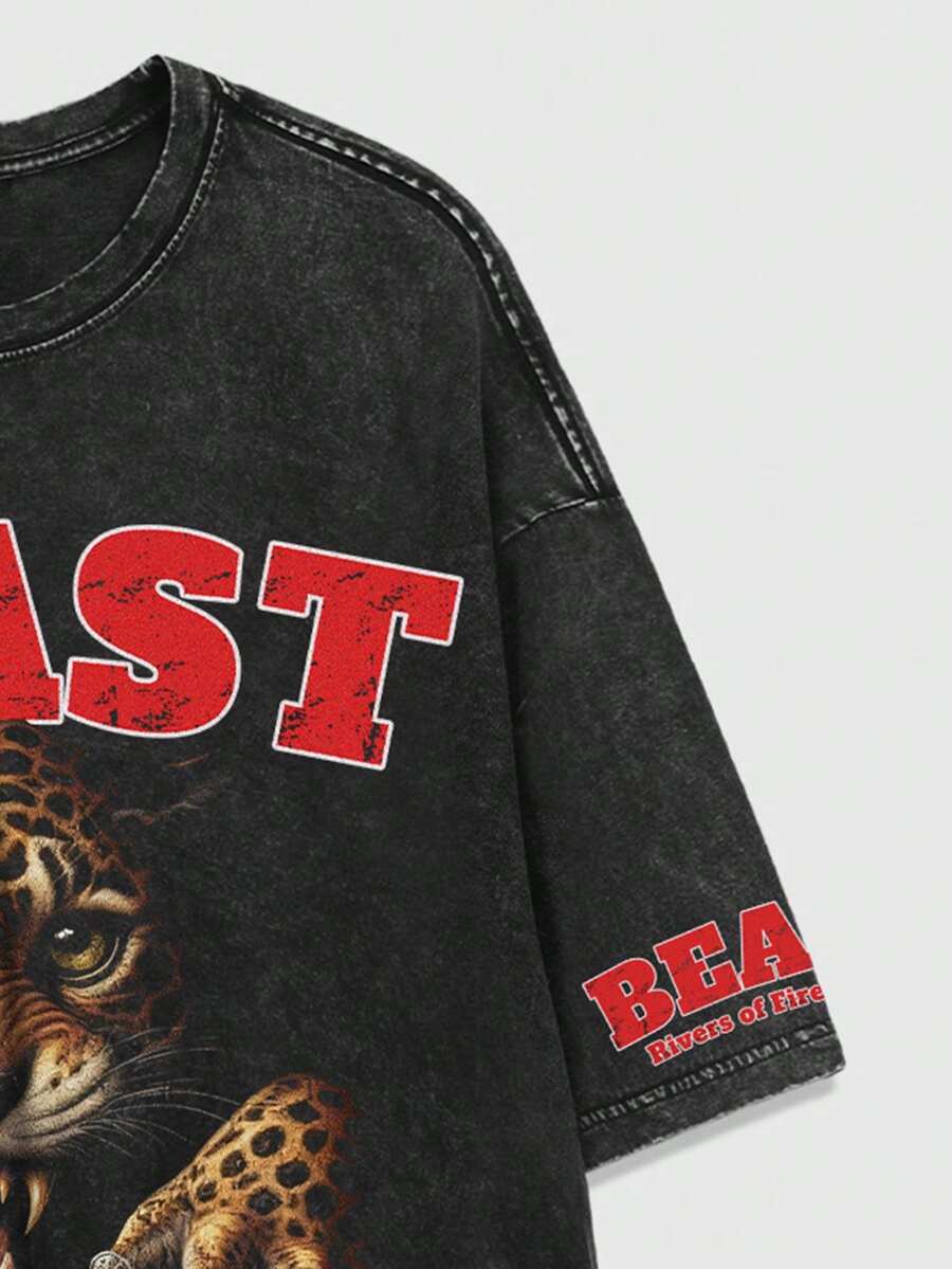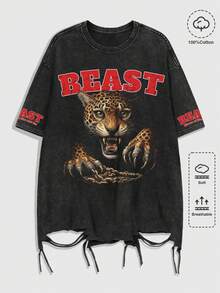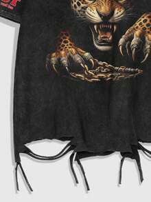 Goth Men's Round Neck Short Sleeve Leopard Print Fashionable Distressed Snow Flake T-Shirt