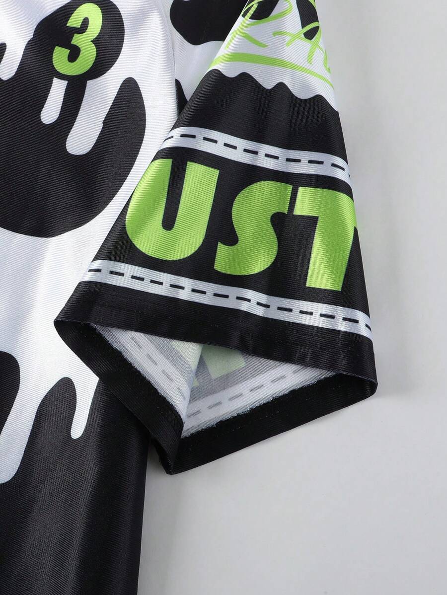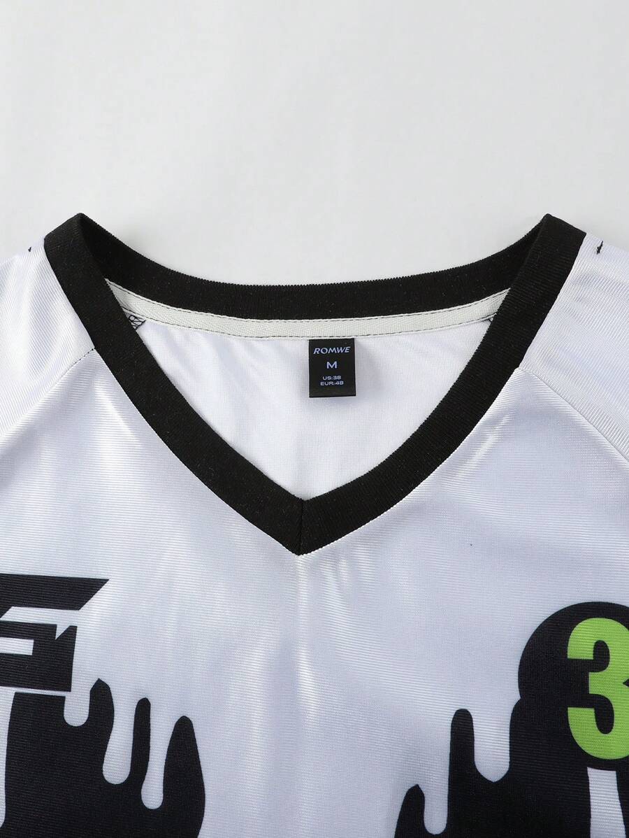 Street Life Men's Skeleton V-Neck Short Sleeve Printed Casual Football Jersey Style T-Shirt, For Everyday Wear
