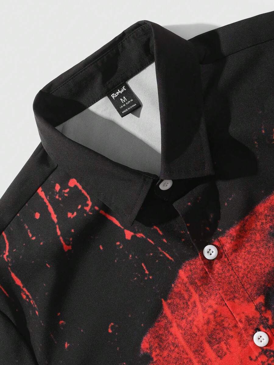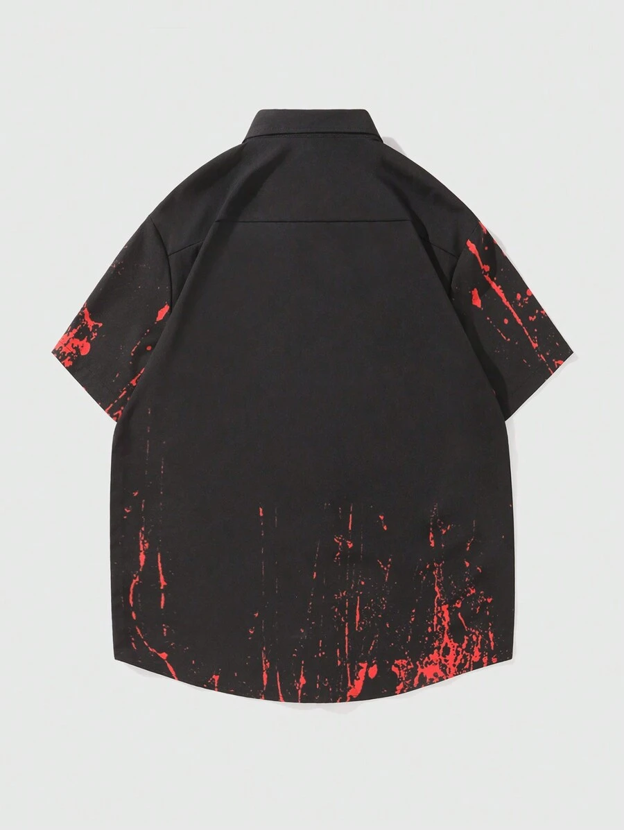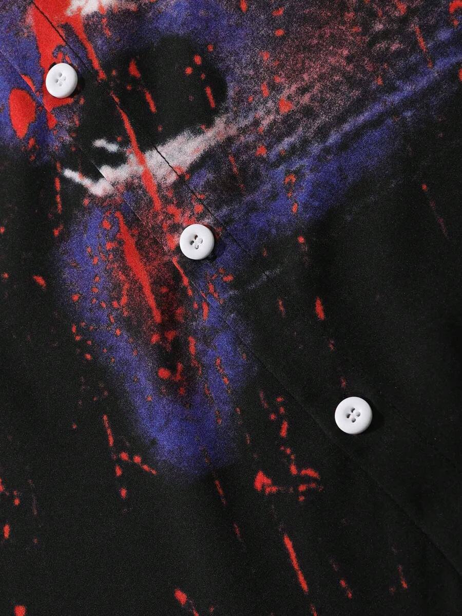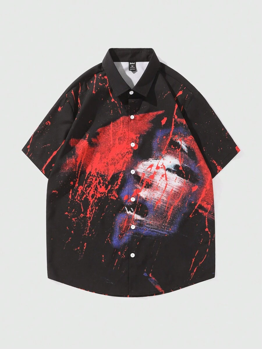 Goth Men's Tie Dye Face Print Short Sleeve Shirt, Casual Wear For Spring/Summer
