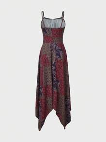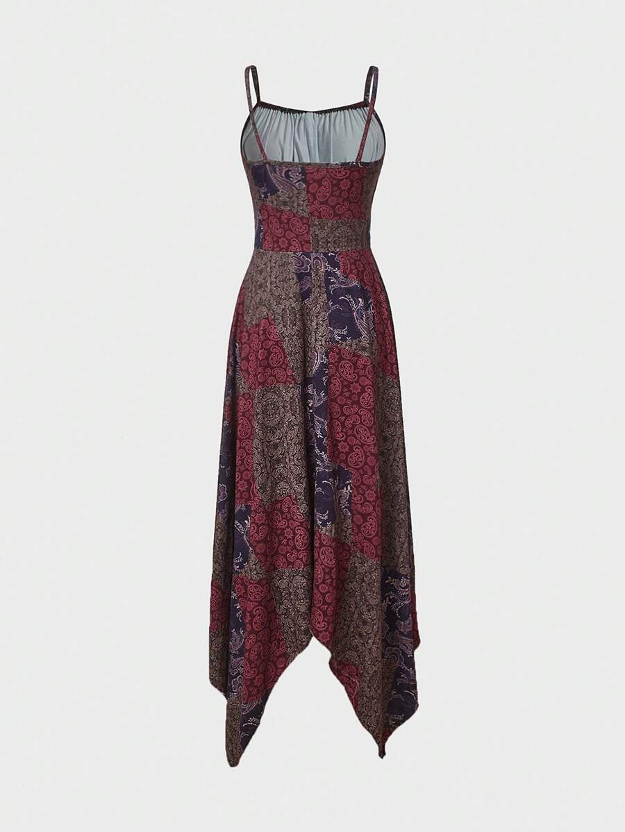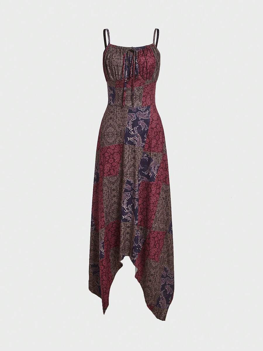 Goth Patchwork Print Tie Front Cami Dress Without Belt