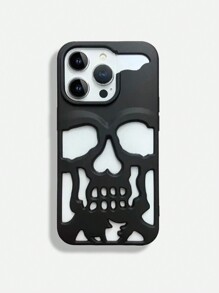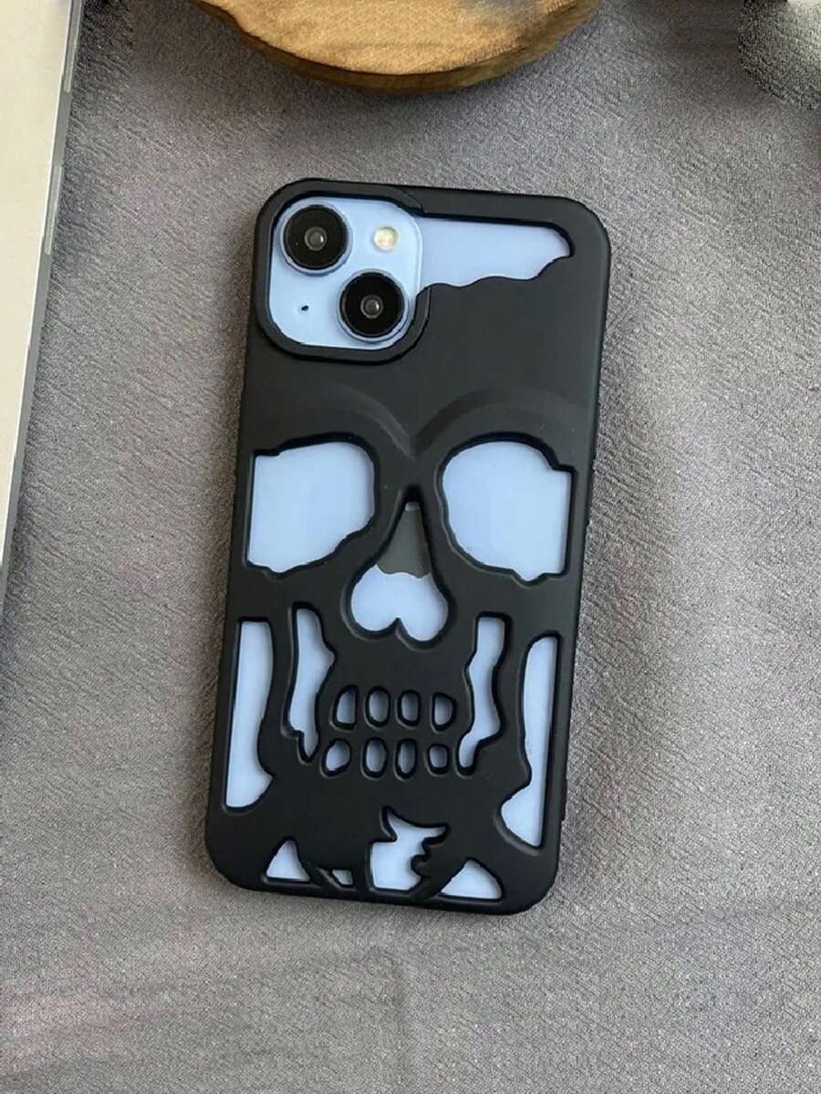 Goth Personalized Cool Skull Pattern Hollow Out Breathable Black Phone Case Compatible With IPhone 12 13 14 Series And Other Mobile Phones