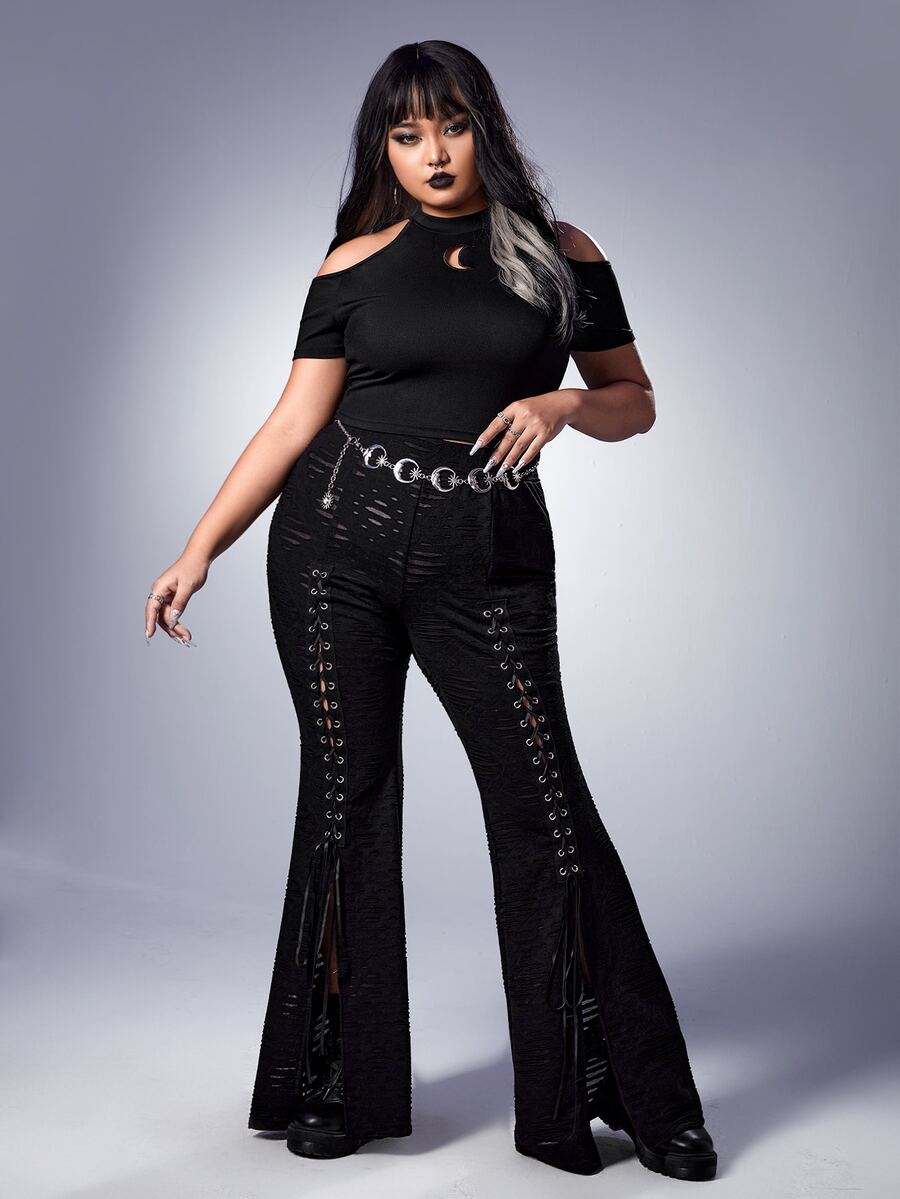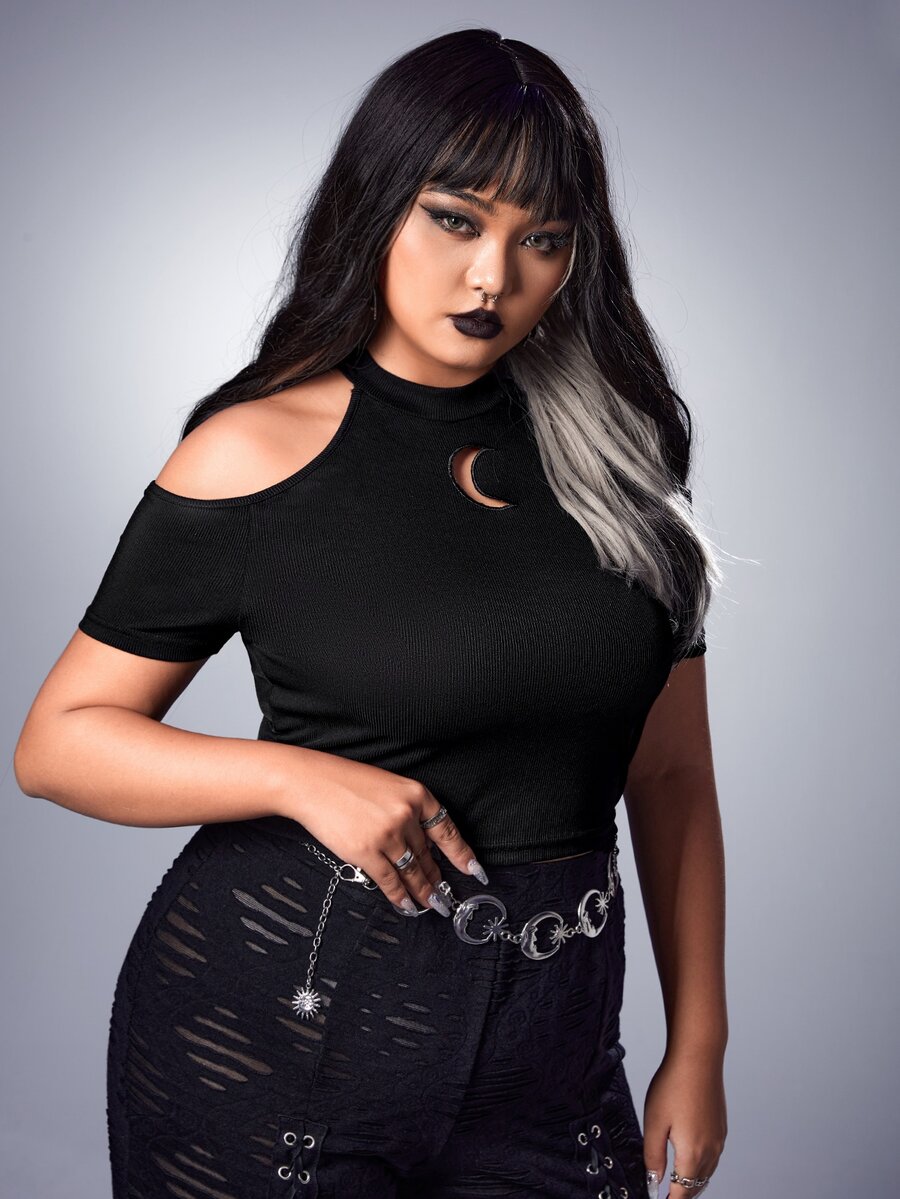 Goth Plus Cold Shoulder Cut Out Crop Tee