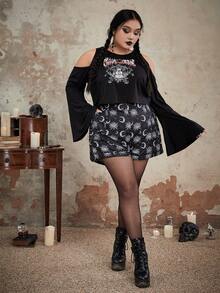 Goth Plus Figure Print Cold Shoulder Tee