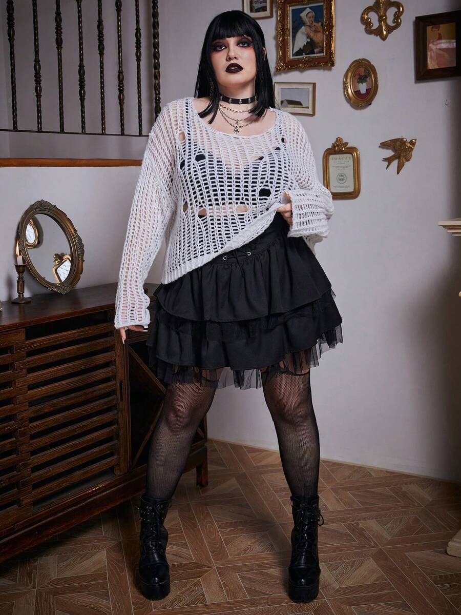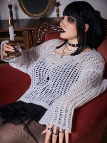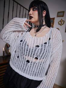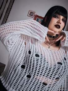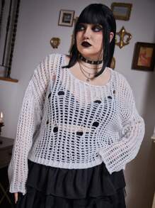 Goth Plus Hollow Out Drop Shoulder Sweater