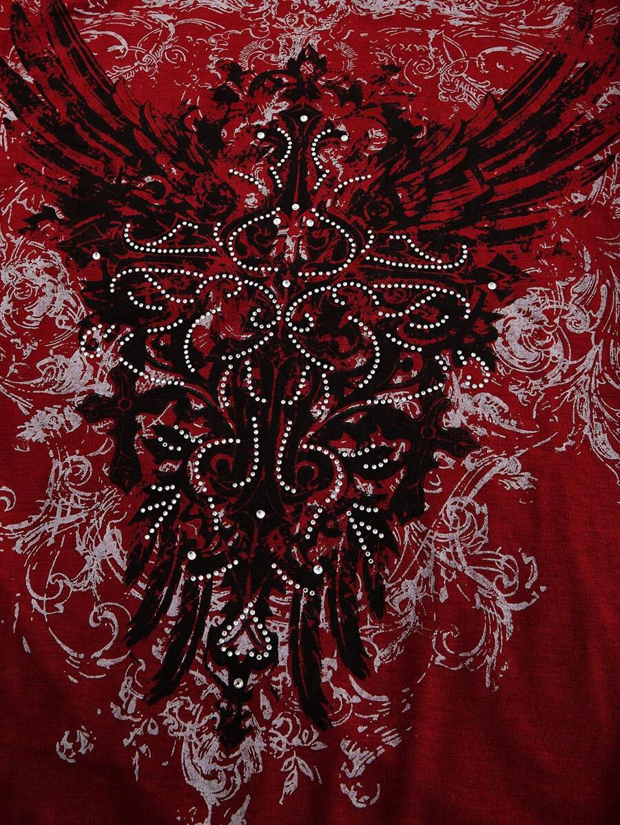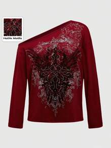 Goth Plus Size Asymmetrical Neck Long Sleeve Cross & Diamante Graphic T-Shirt