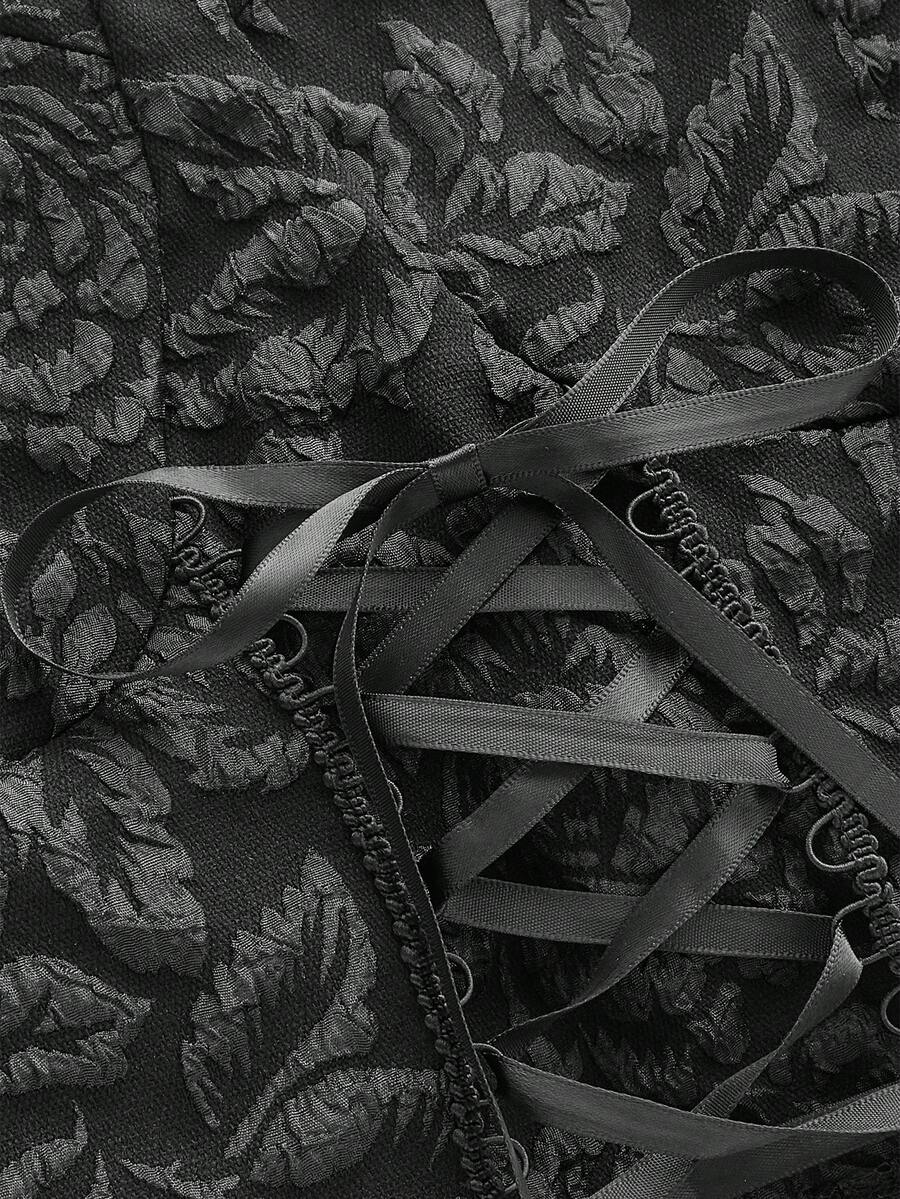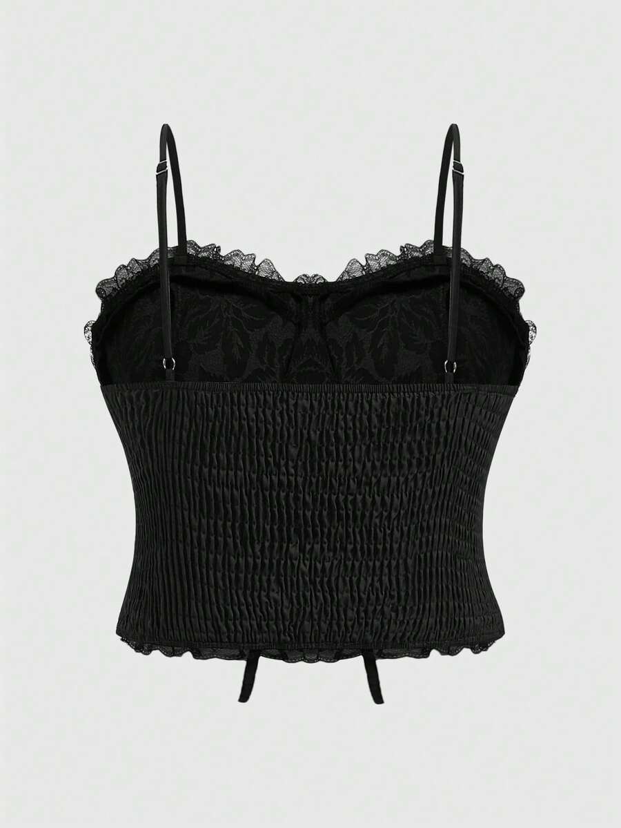 Goth Plus Size Holiday Style Floral Jacquard Lace Trim Crisscross Tie Cami
