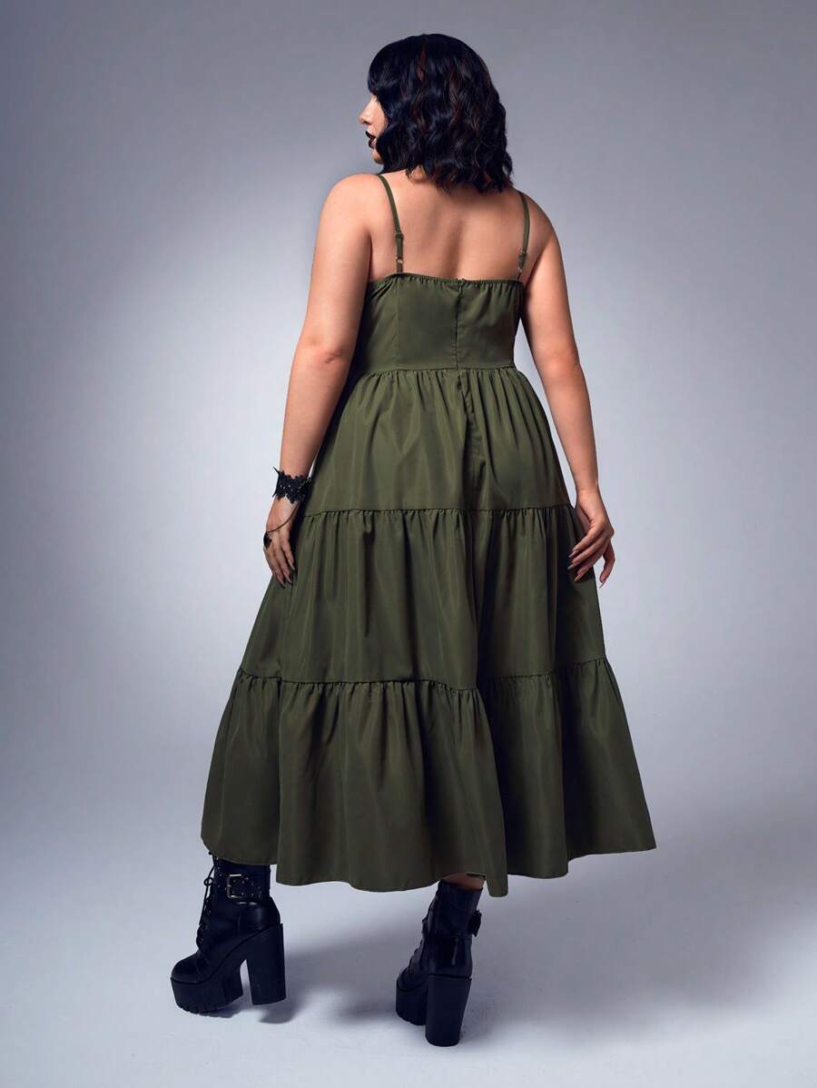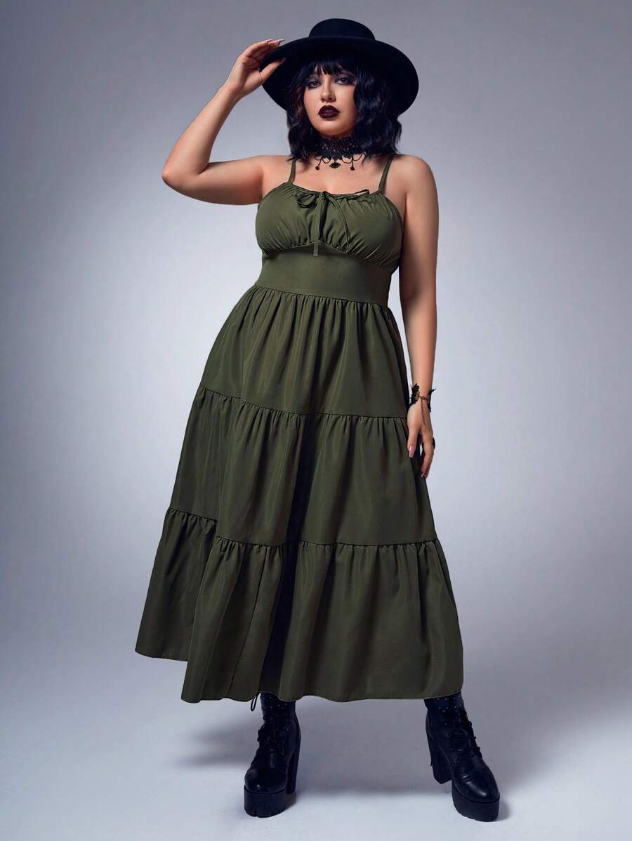 Goth Plus Tie Front Ruffle Hem Cami Dress