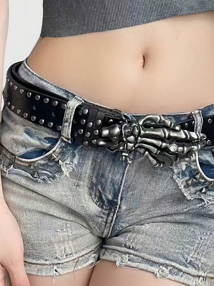 Goth Punk Rivets Skull Belt, Street Fashion Unique Style, Unisex Waistband