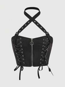 Pure Gothic Street Sexy Strapless Bandage Lace Up Elastic Eyelet Plus Size Halter Top, For Summer