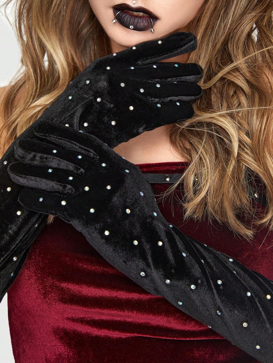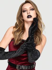 Goth Rhinestone Decor Above Elbow Full Finger Gloves Gloves