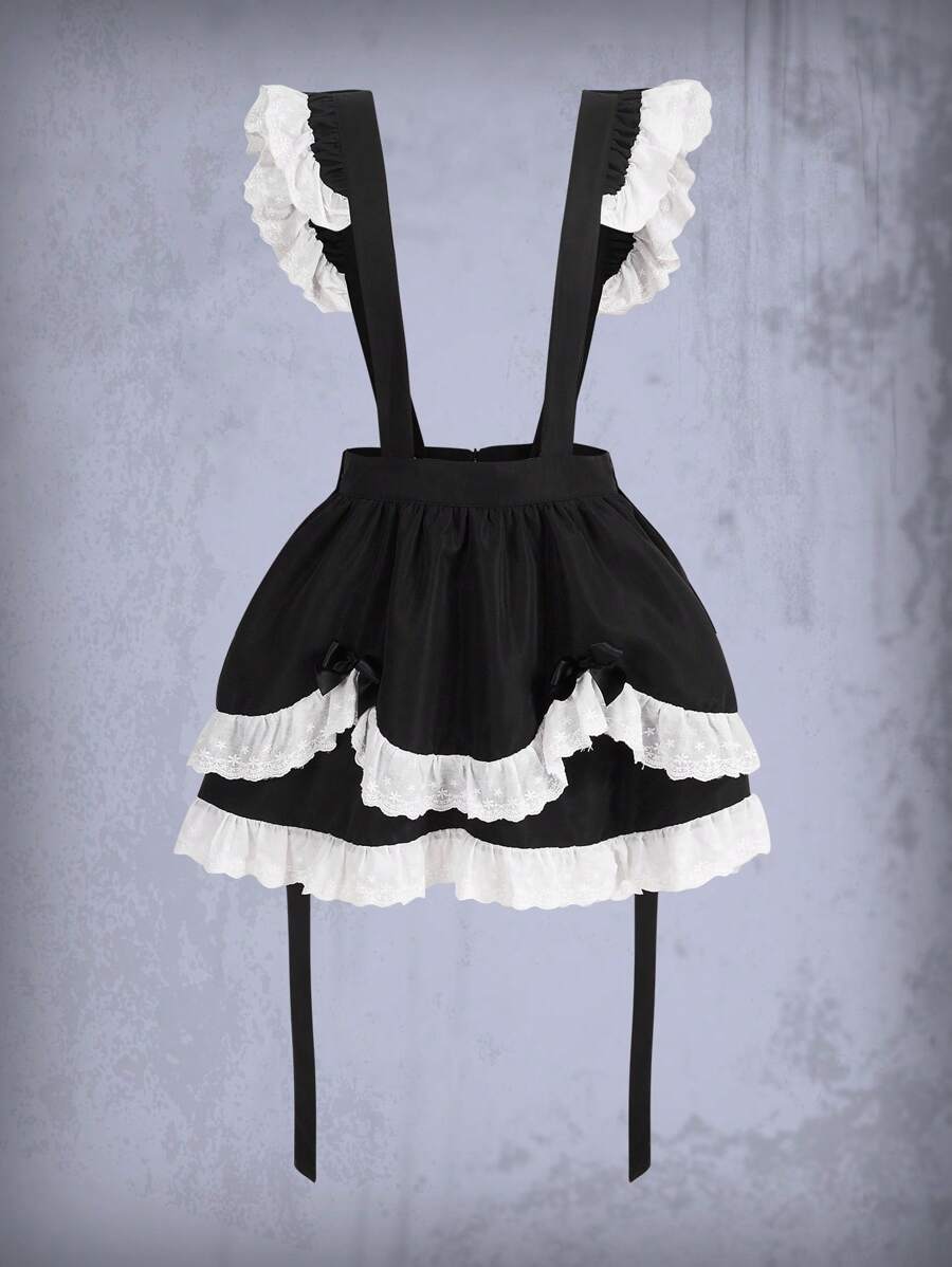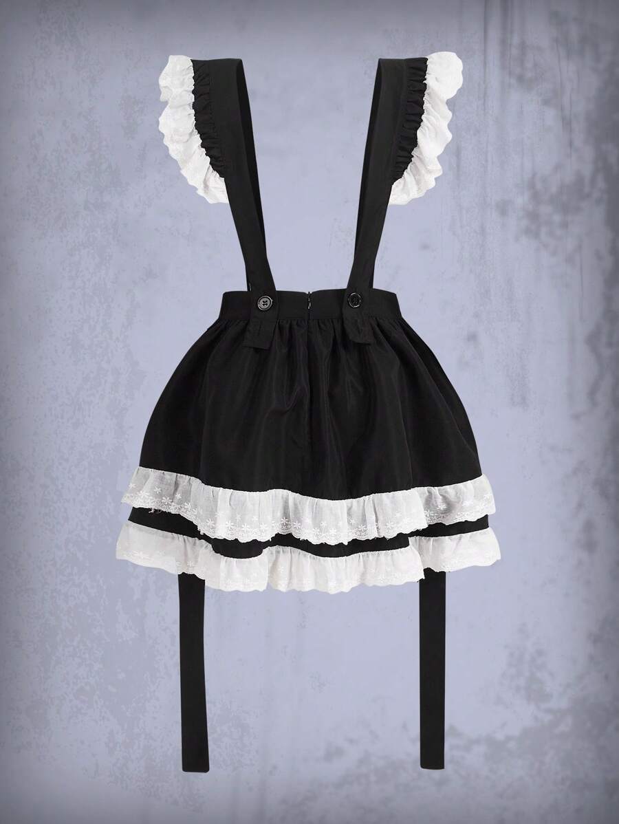 Goth Ruffle Trim Suspender Skirt