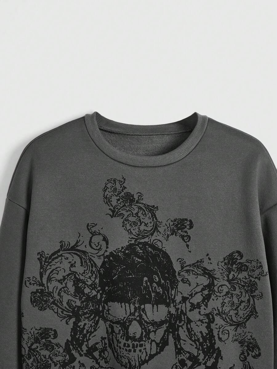 Goth Skull Graphic Drop Shoulder Sweatshirt