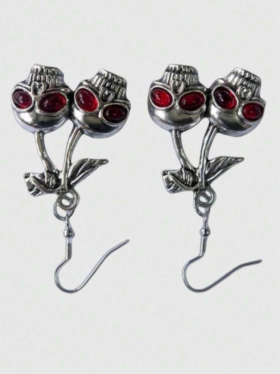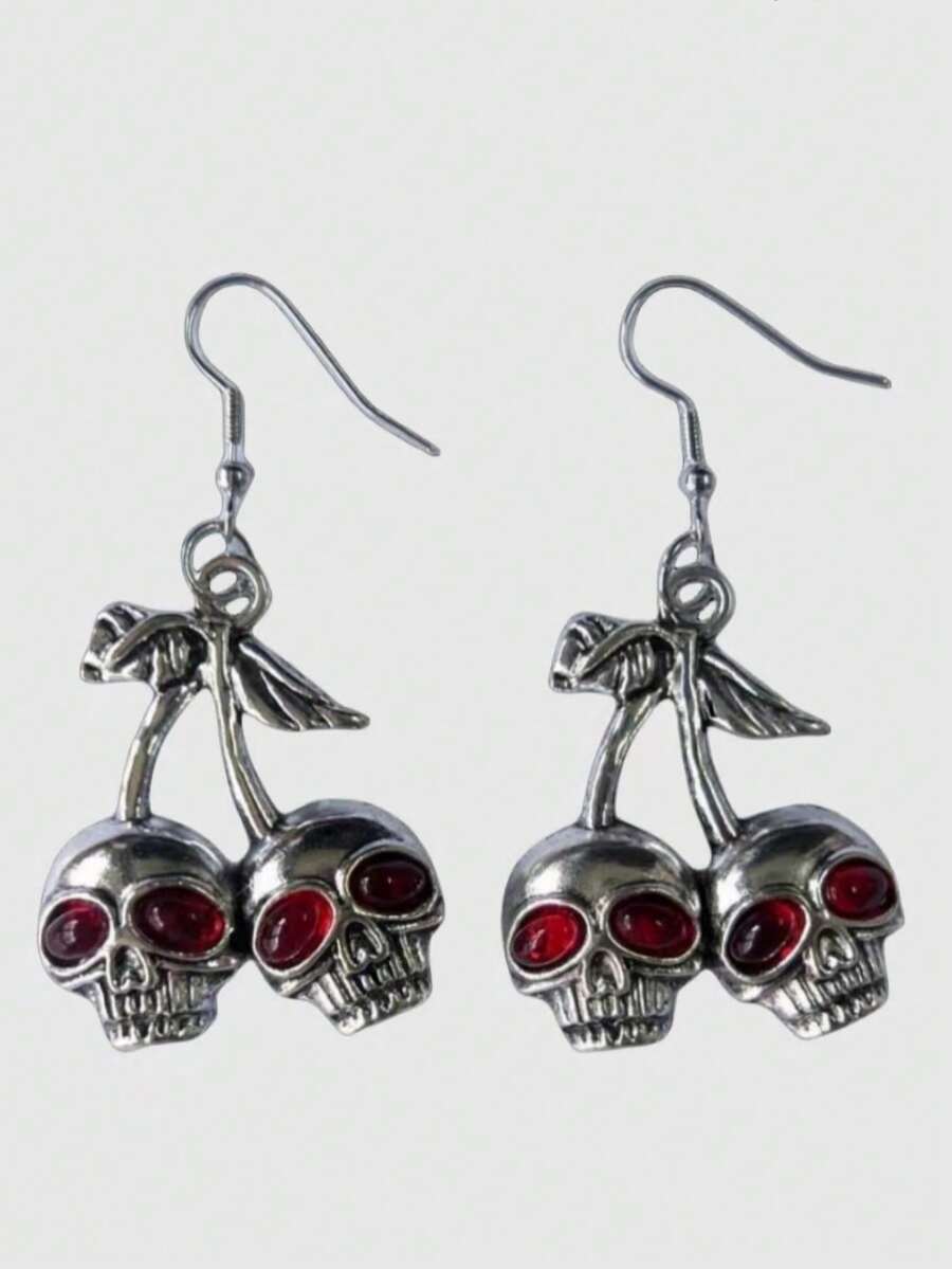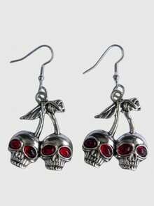 Skull Head Detail Cherry Shaped Gothic Style Drop Earrings