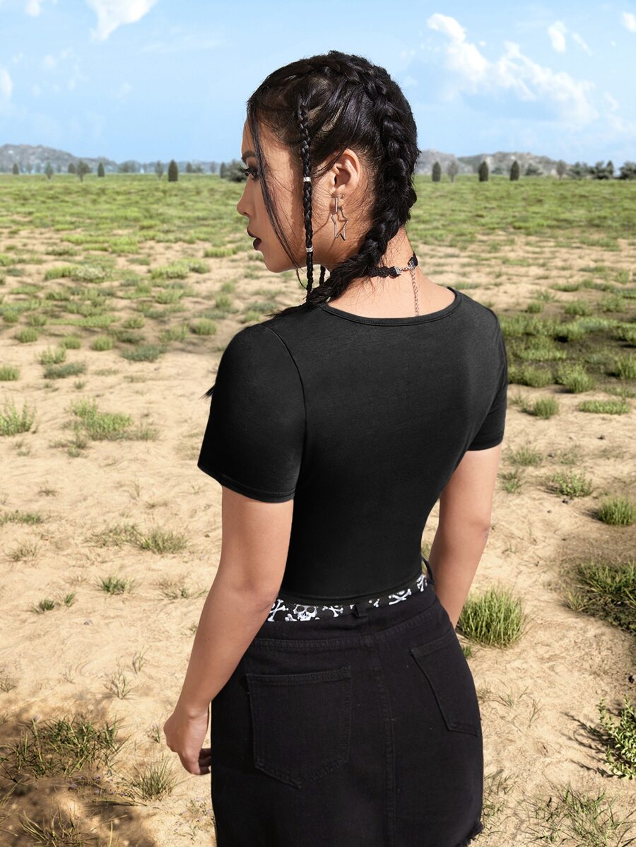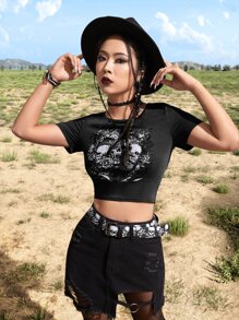 Goth Skull & Rose Print Tee