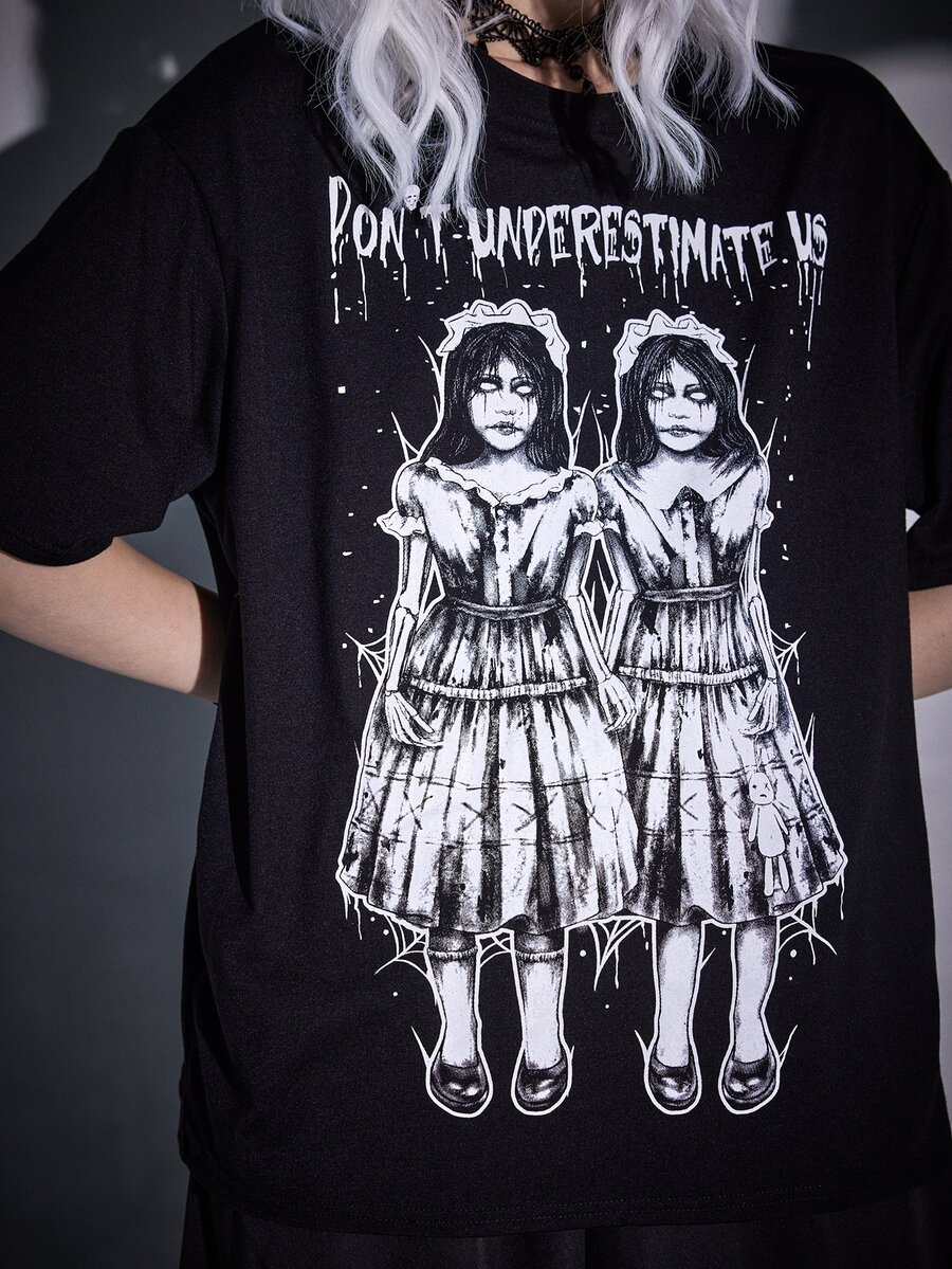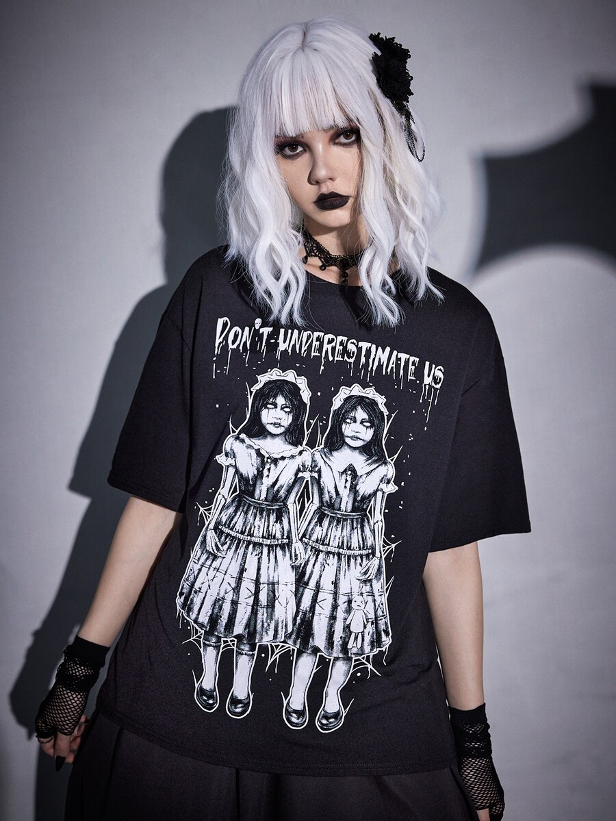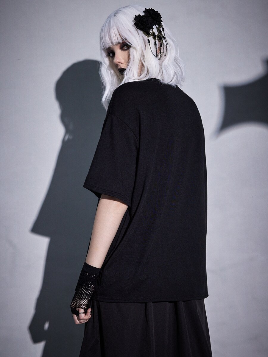 Goth Slogan Figure Graphic Drop Shoulder Tee