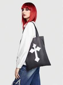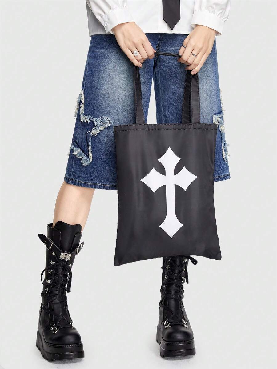 Goth Small Shopper Bag Casual Cross Graphic For Shopping