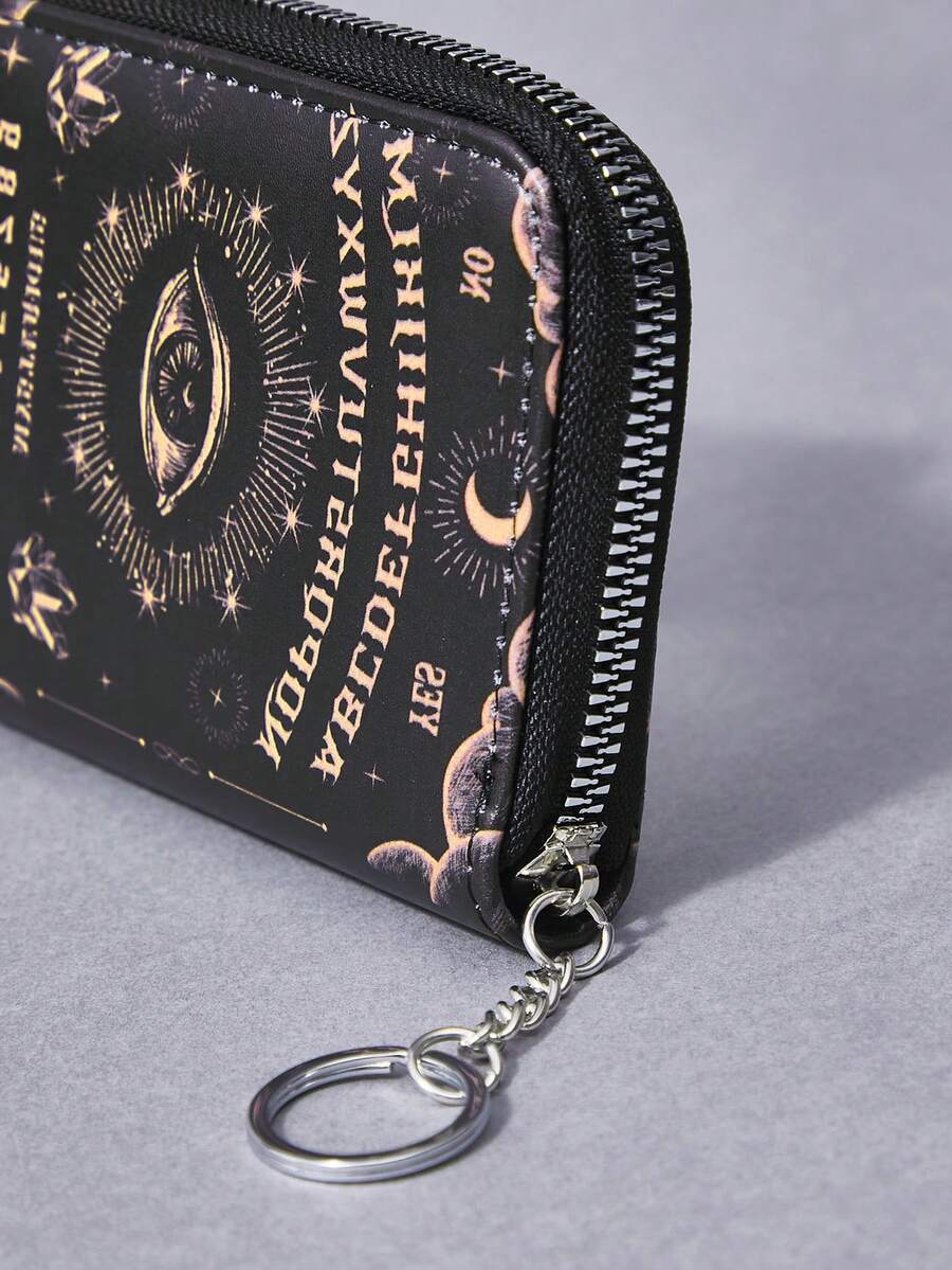 Small Wallet Gothic Letter Eye & Moon Graphic With Zipper