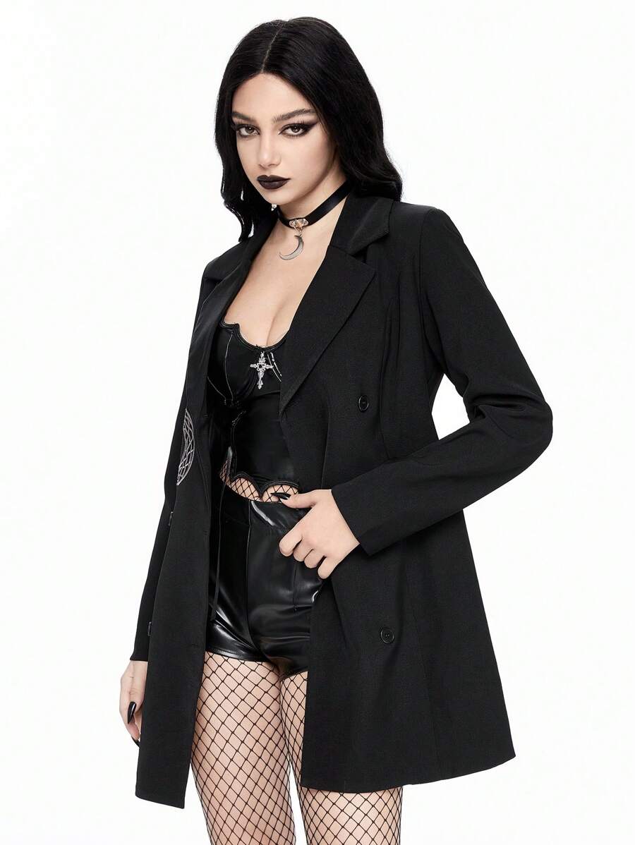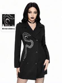 Goth Snake Embroidery Women Long Pants And Blazer Set