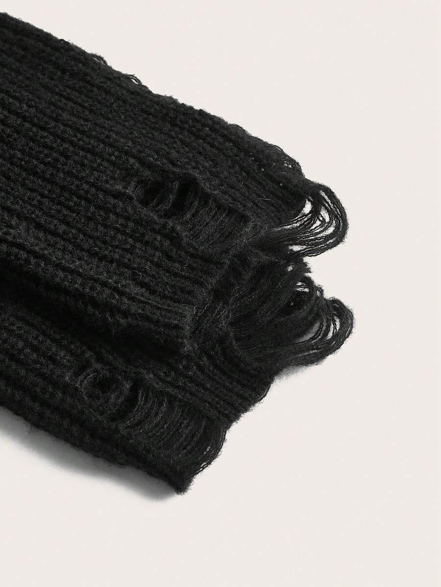 Goth Solid Ripped Foldover Off Shoulder Sweater