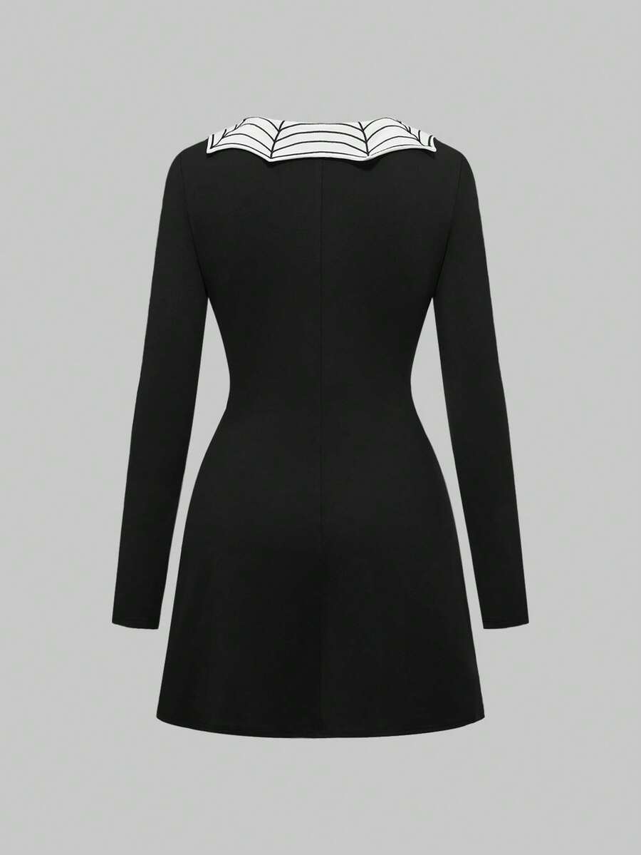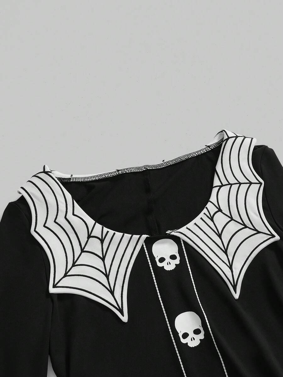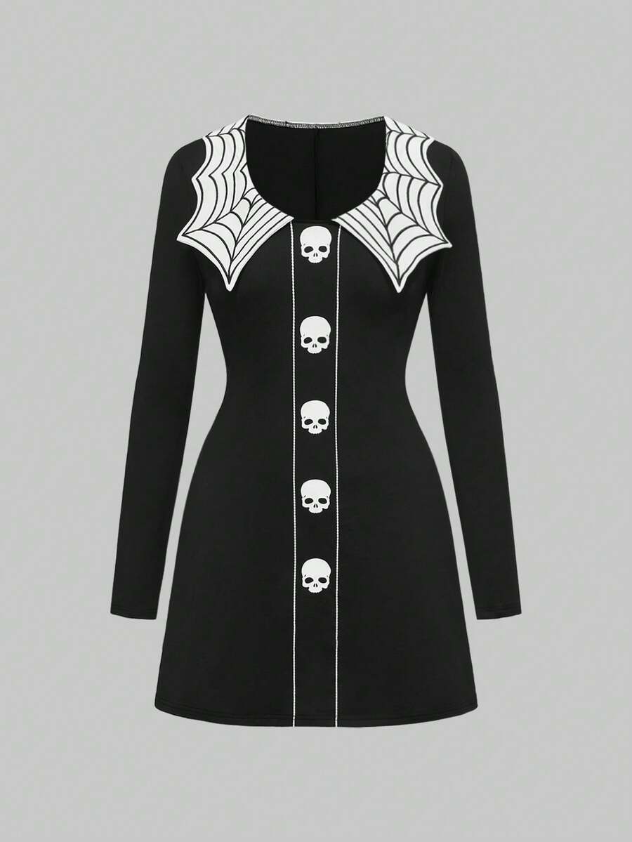 Goth Spider Web & Skull Embroidery A-Line Mini Dress