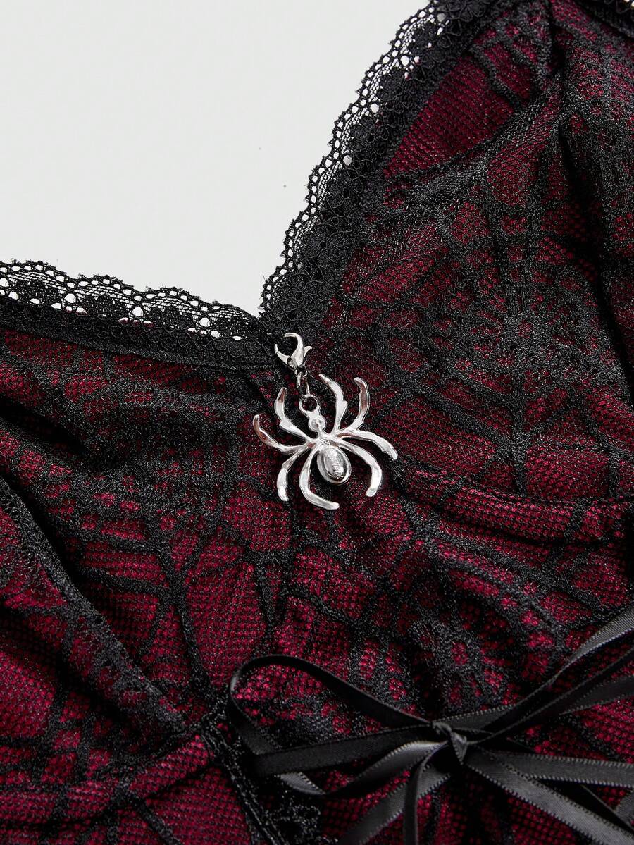 Goth Style Lace-Up Waist Asymmetrical Layered Hem Spider Web Mesh Women Tank Top