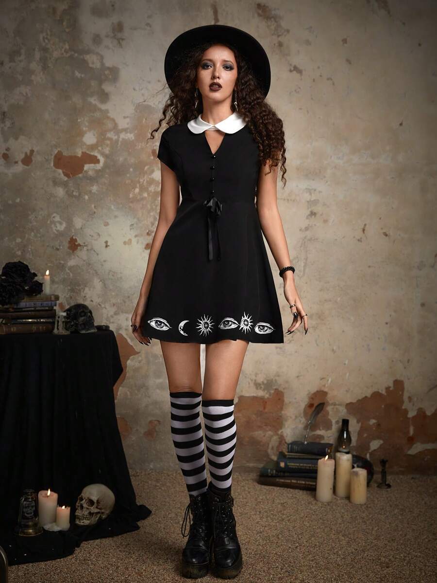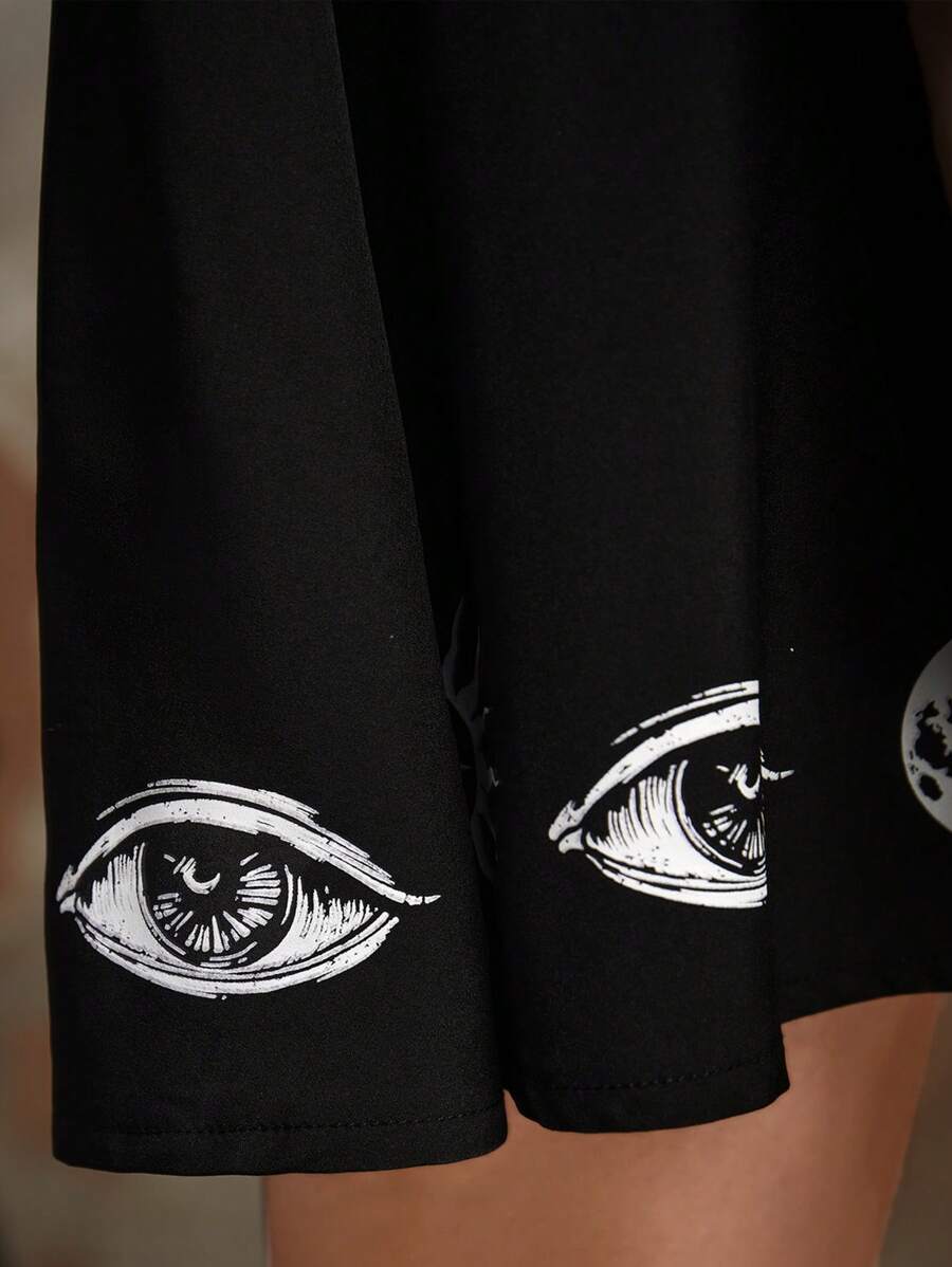 Goth Sun & Moon Graphic Cut Out Dress