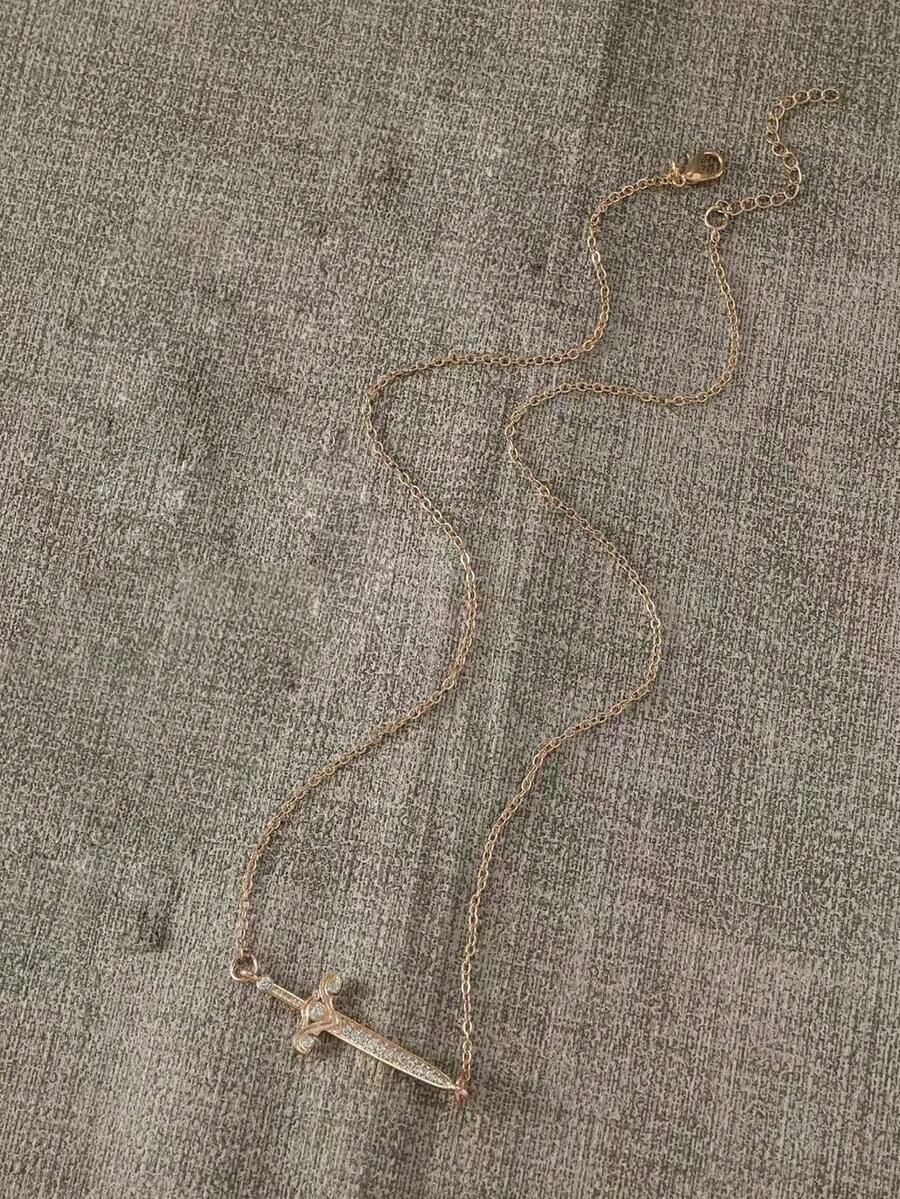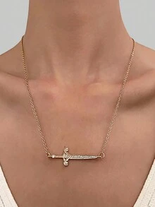 Goth Sword & Rhinestone Decorated Pendant Necklace For Women