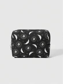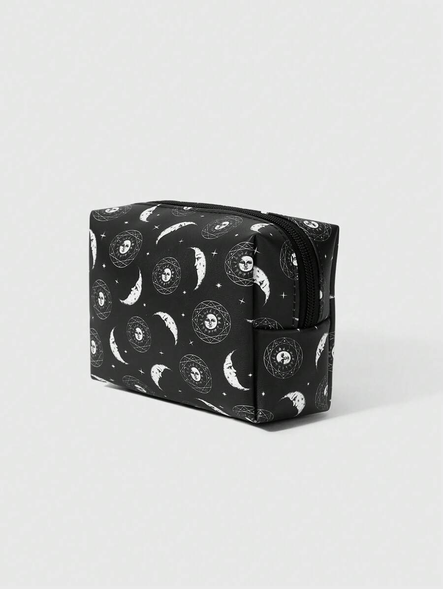 Goth Thick Portable Cosmetic Bag With Large Capacity For Women - Sun, Moon And Stars Pattern