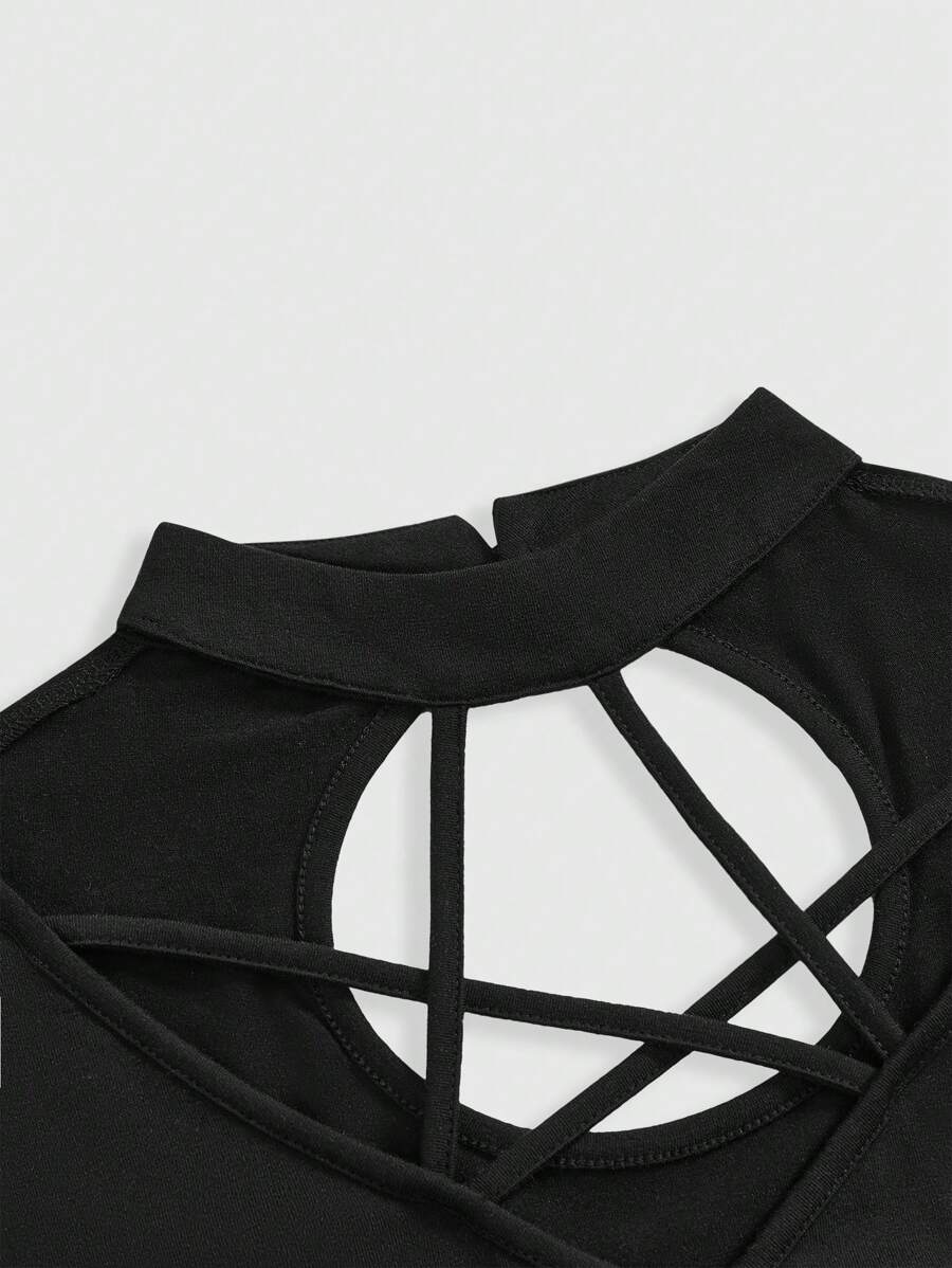 Vintage Gothic Pentagram Off-The-Shoulder Tie Strap Women T-Shirt