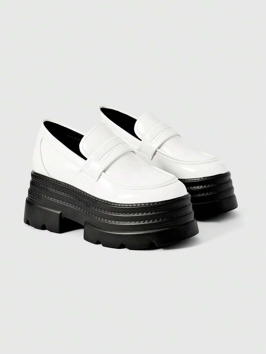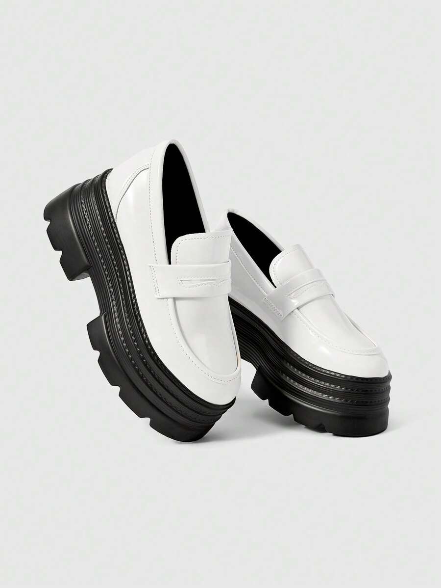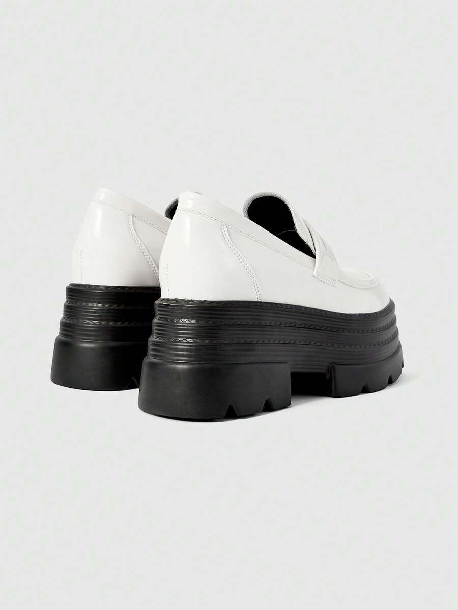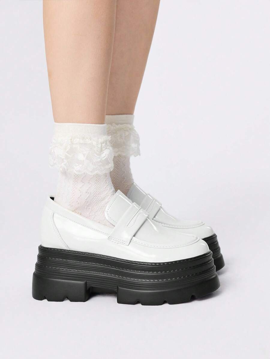 Goth Women Beige Loafers Slip-On Mary Jane Leather Small Shoes, Japanese School Uniform Shoes, Formal Work Shoes, Chunky Platform & Wedge Heels
