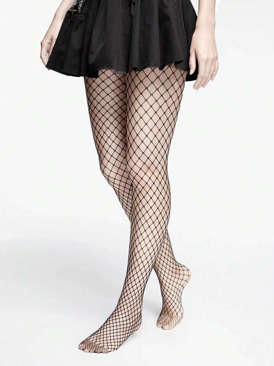 Goth Women Plain Color Fishnet Stockings Stretch Tights