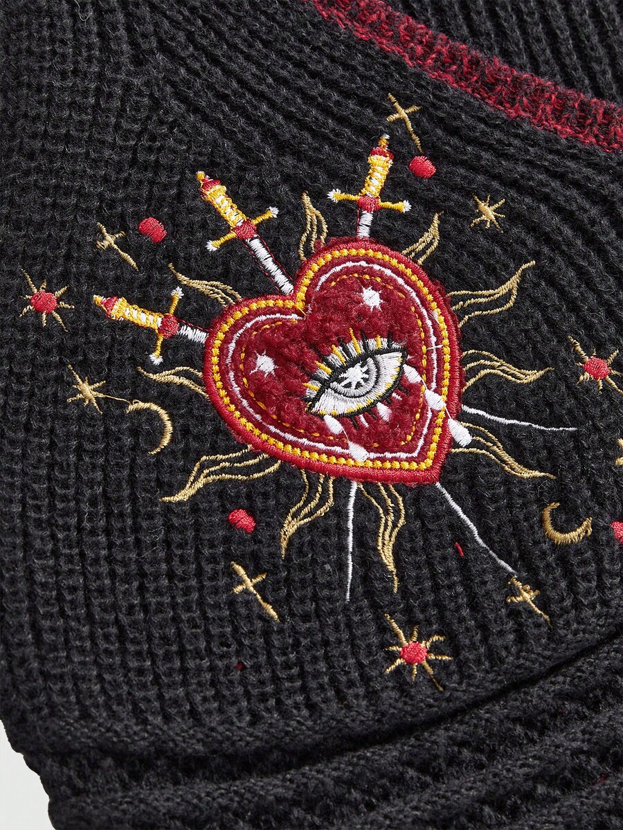 Women Y2K Goth Heart Eye Cross Embroidery Hooded Knit Sweater
