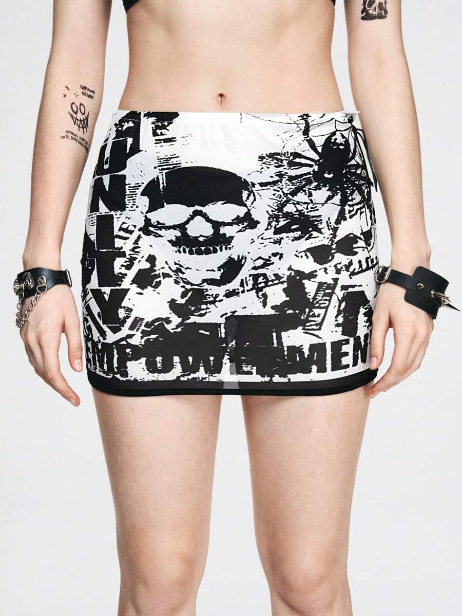 Goth Women's Allover Print Summer Vacation Cover-Up Skirt