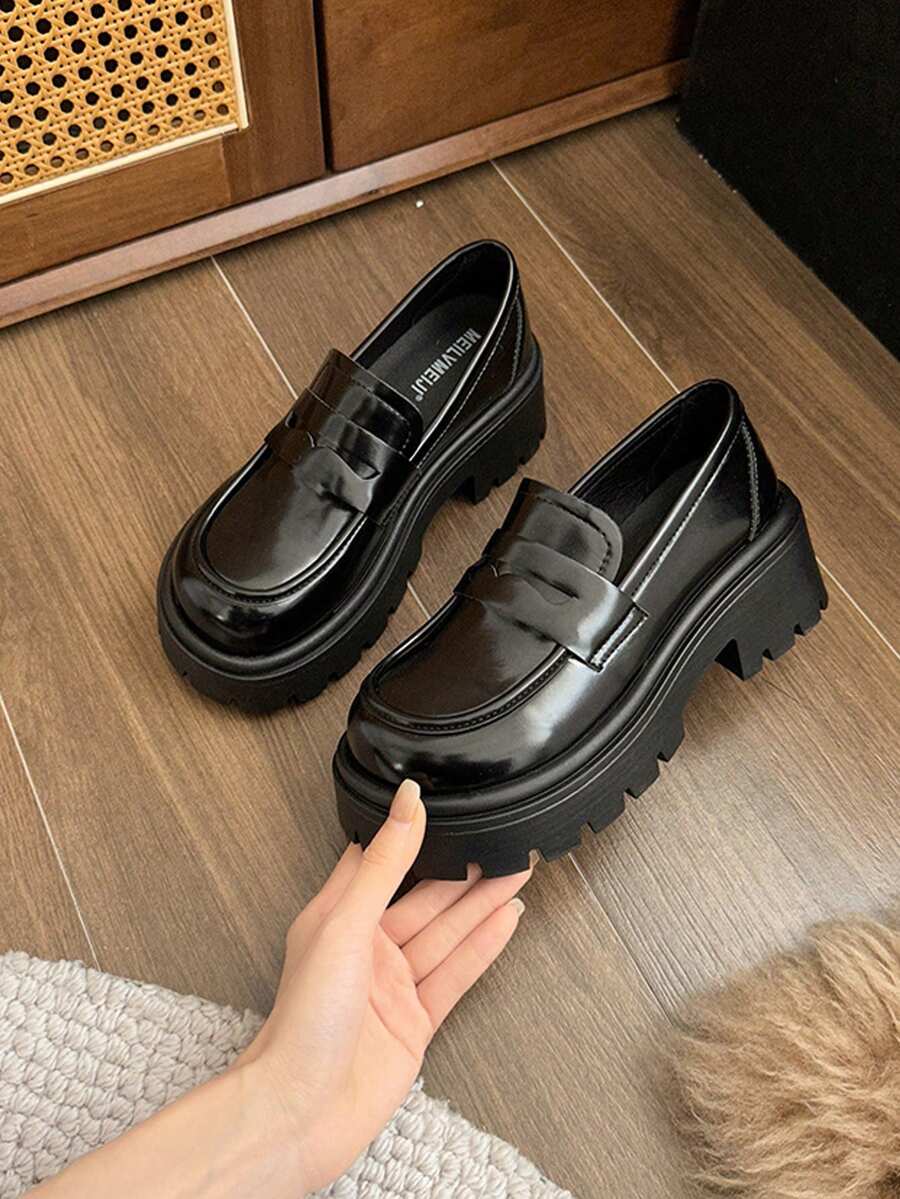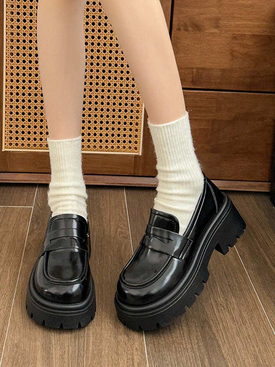 Goth Women's Black Casual Loafers Wedge Heel Thick Sole Shoes