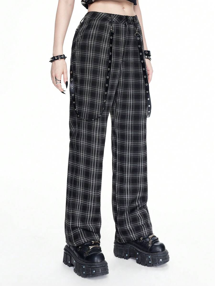Goth Women's Casual College Style Plaid Straight Leg Pants