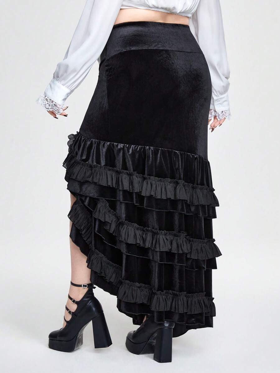 Goth Women's Elegant Ruffled High Slit Skirt With Waist Tie, Plus Size