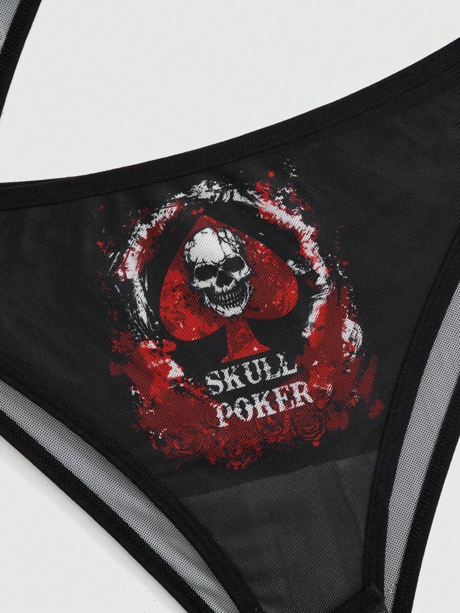 Goth 3pack Skull & Cartoon Graphic Contrast Lace Panty Set