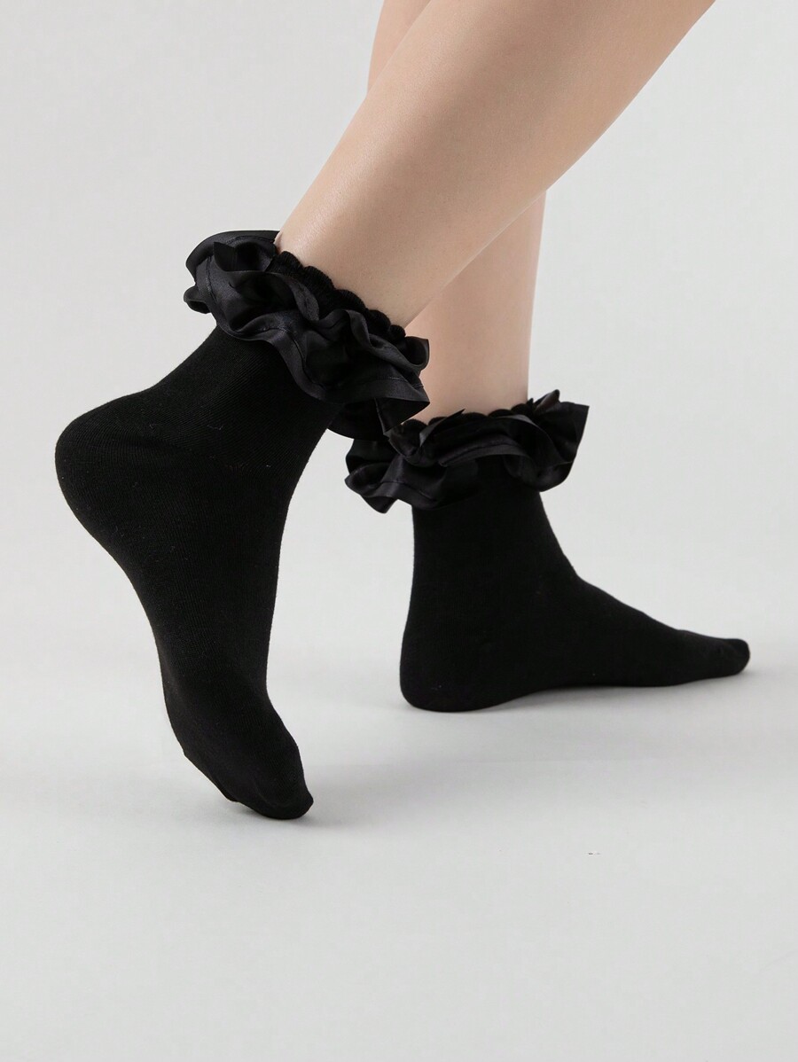 Goth Women's Plain Ruffled Mid-Calf Socks