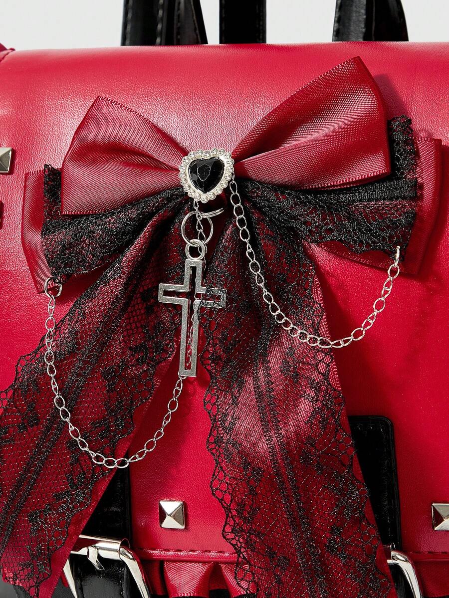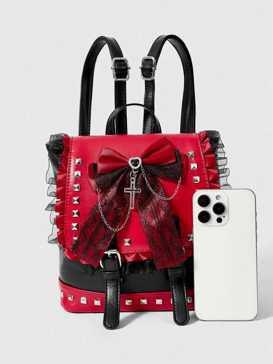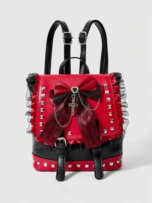 Goth Women's Punk Style Fashion Backpack With Bow Rivet Decor