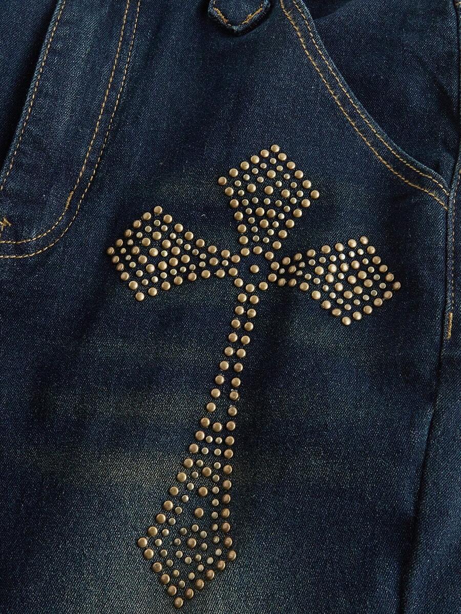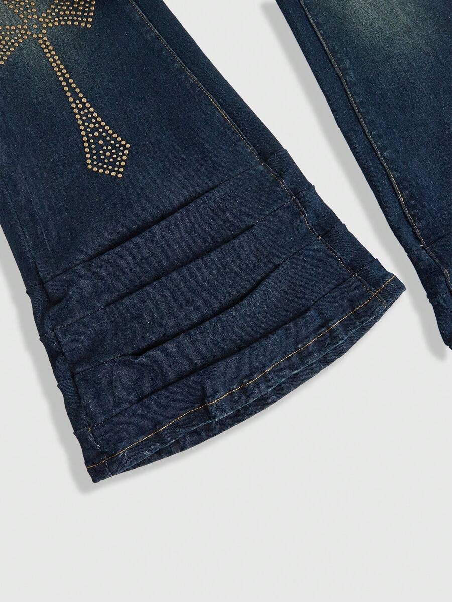 Goth Women's Rhinestone Cross Embellished Flared Jeans With Pockets, Fashionable