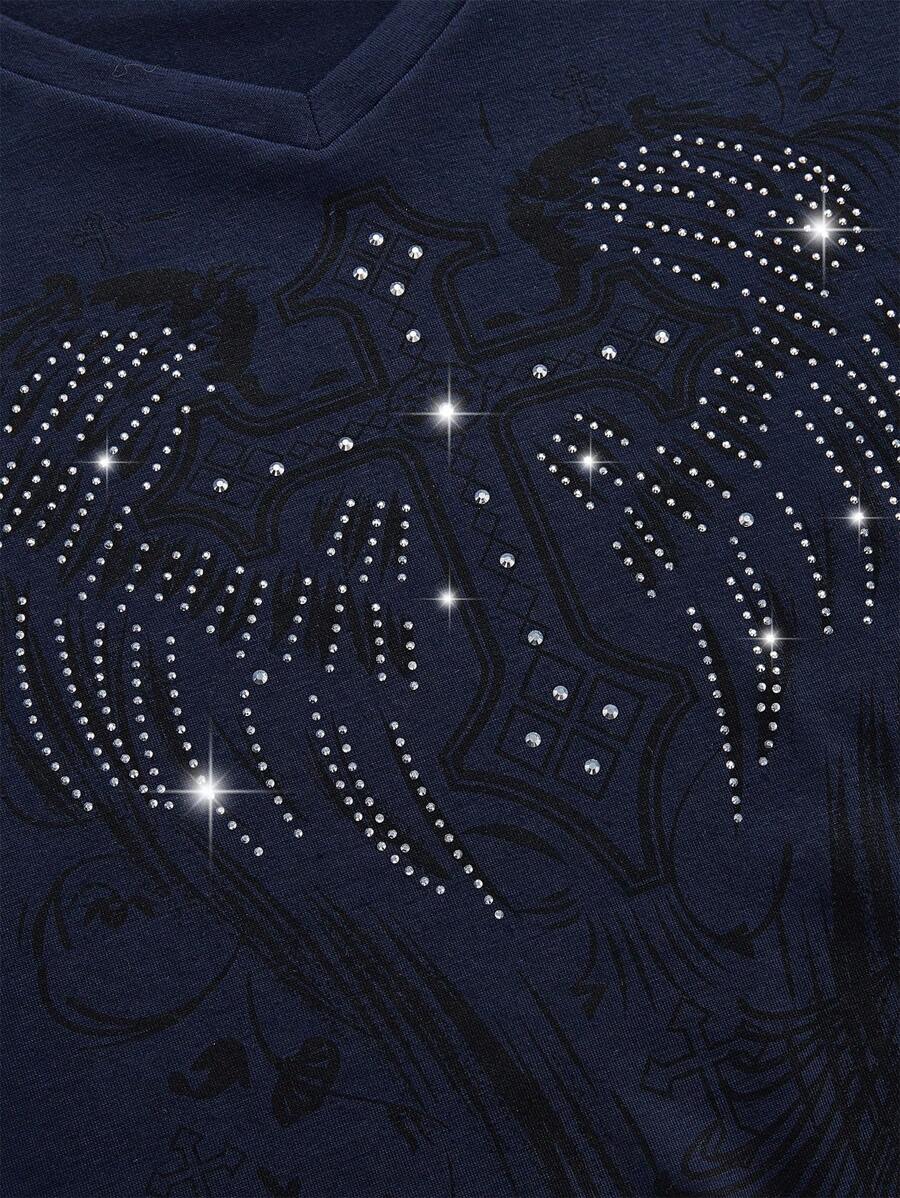 Goth Women's Rhinestone Decor Wing Pattern Short Sleeve T-Shirt