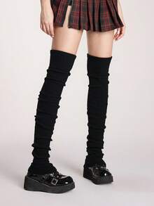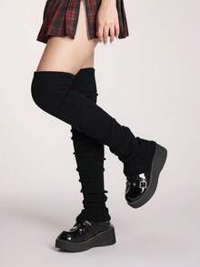 Goth Women's Solid Color Plush Warm Leg Warmers