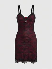 Goth Women's Spider Print Slim Fit Spaghetti Strap Dress
