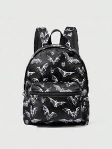 Gothic Bat Print Vintage Backpack, Large Capacity Commuter Bag, Suitable For Halloween