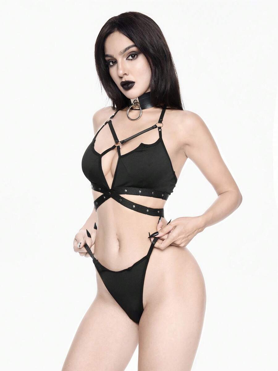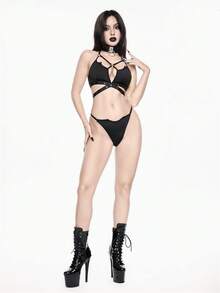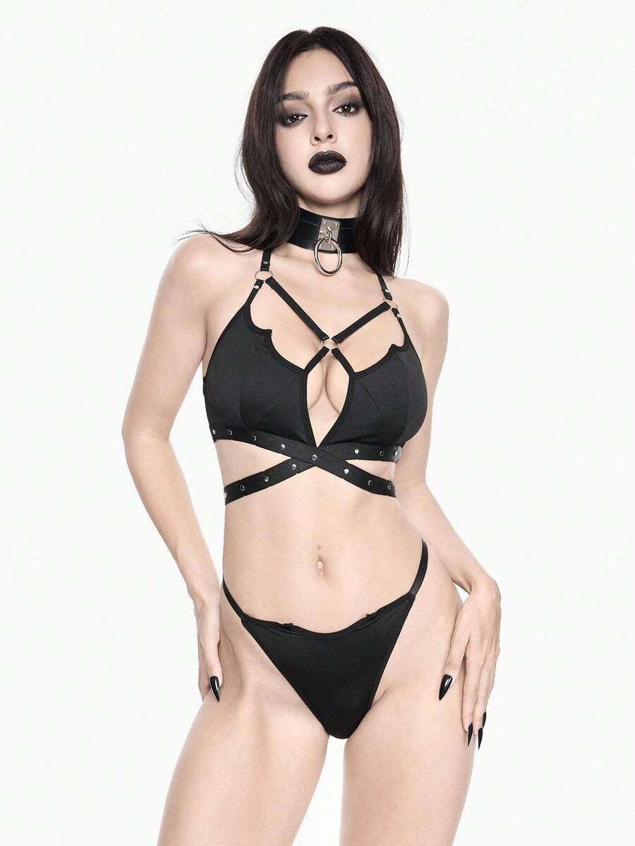 Gothic Bat Wing Eyelet Lace Bralette & Thong Lingerie Set