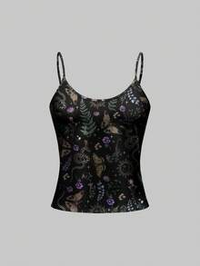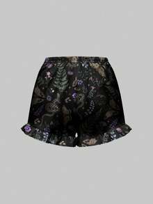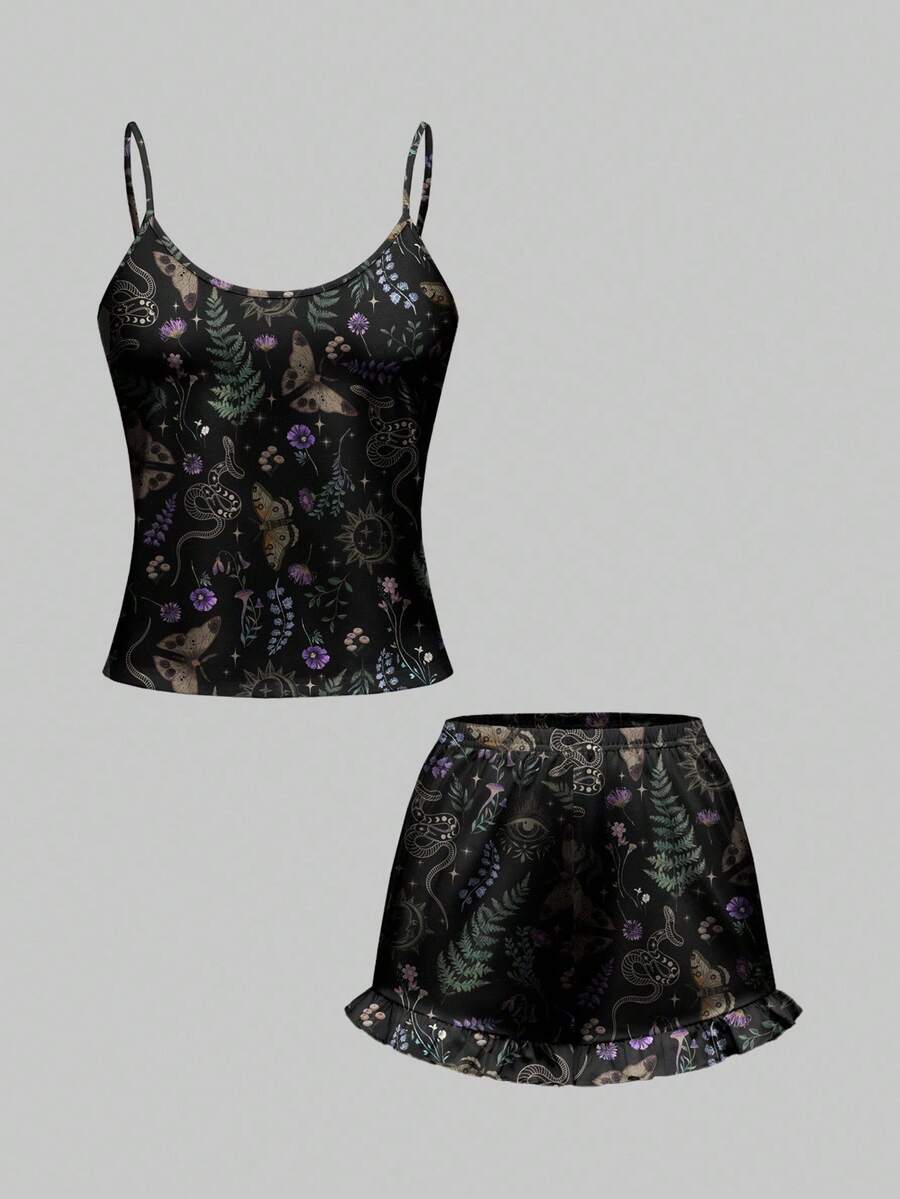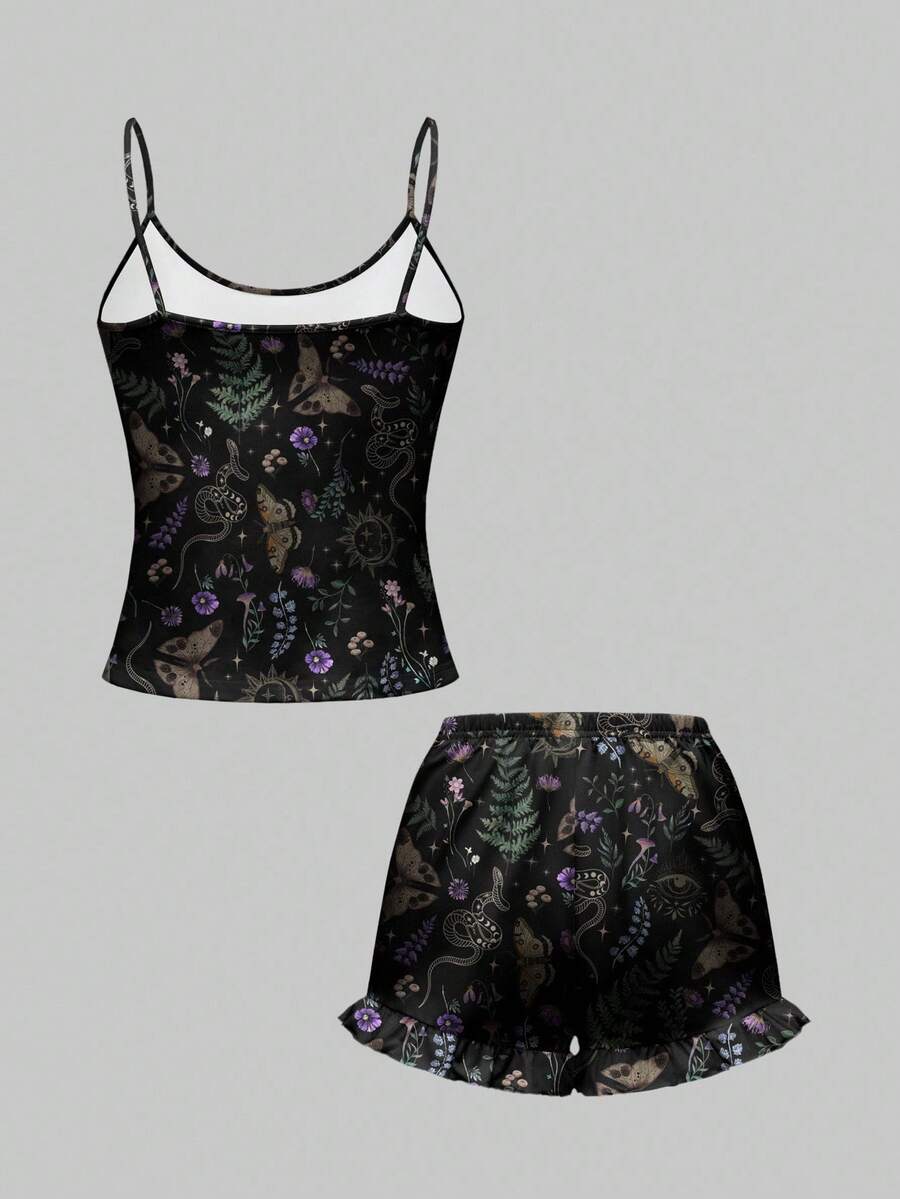 Goth Gothic Butterfly, Snake Skin, Leaf & Floral All-Over Print Camisole & Shorts Pajama Set, Casual Loungewear