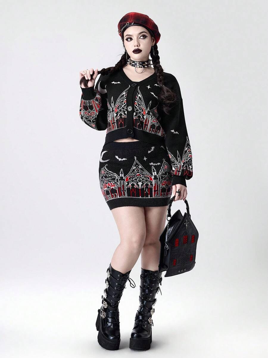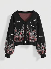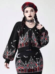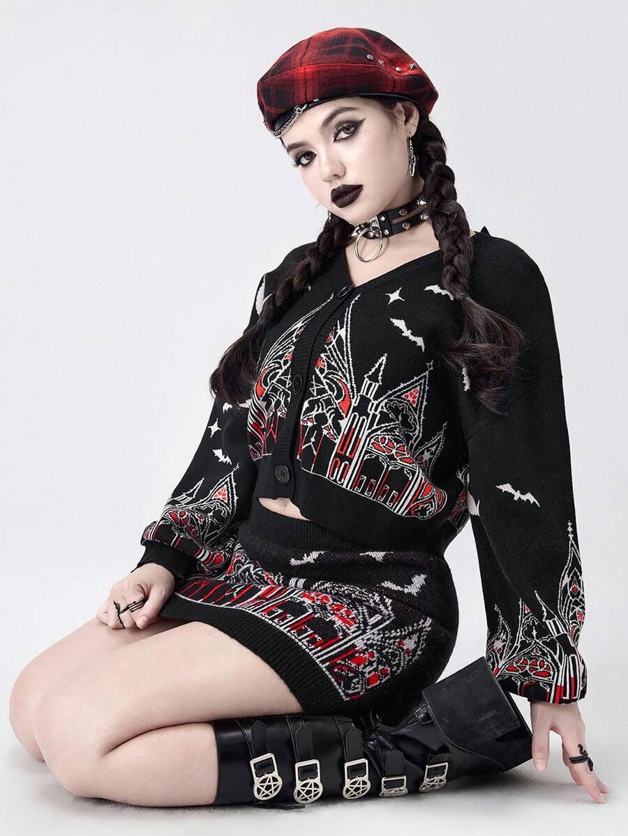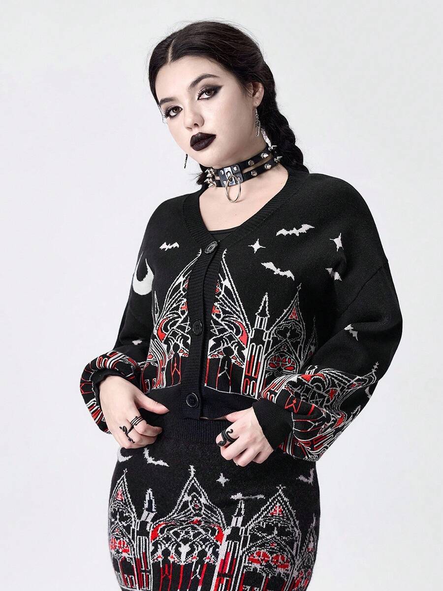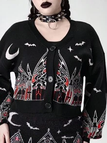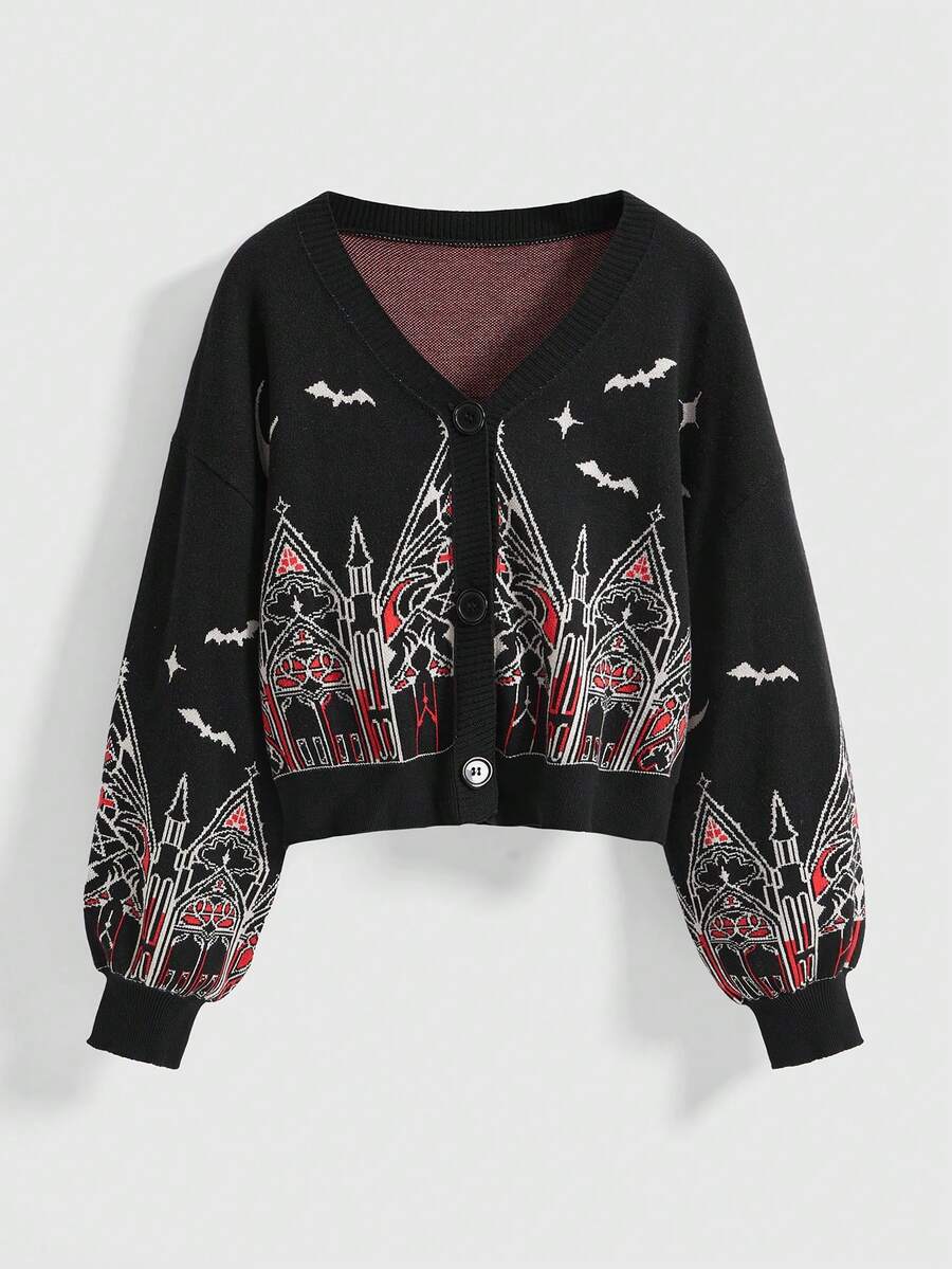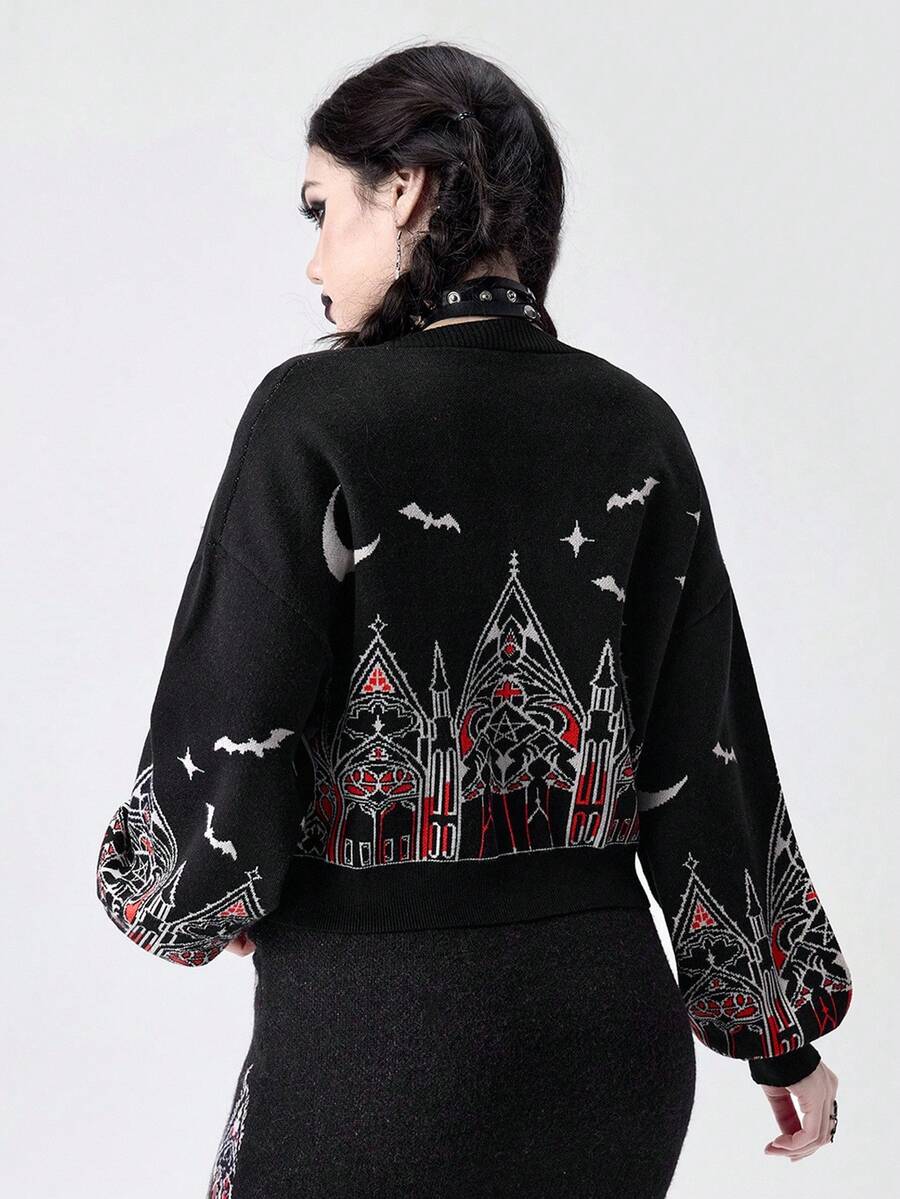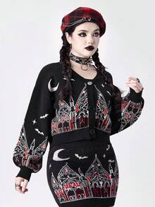 Gothic Castle & Church Star Moon Jacquard Women Short Cardigan