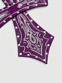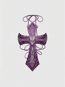Goth Gothic Cross & Skull Embroidery Rivet Backless Sexy Crop Top For Summer Beach Vacation